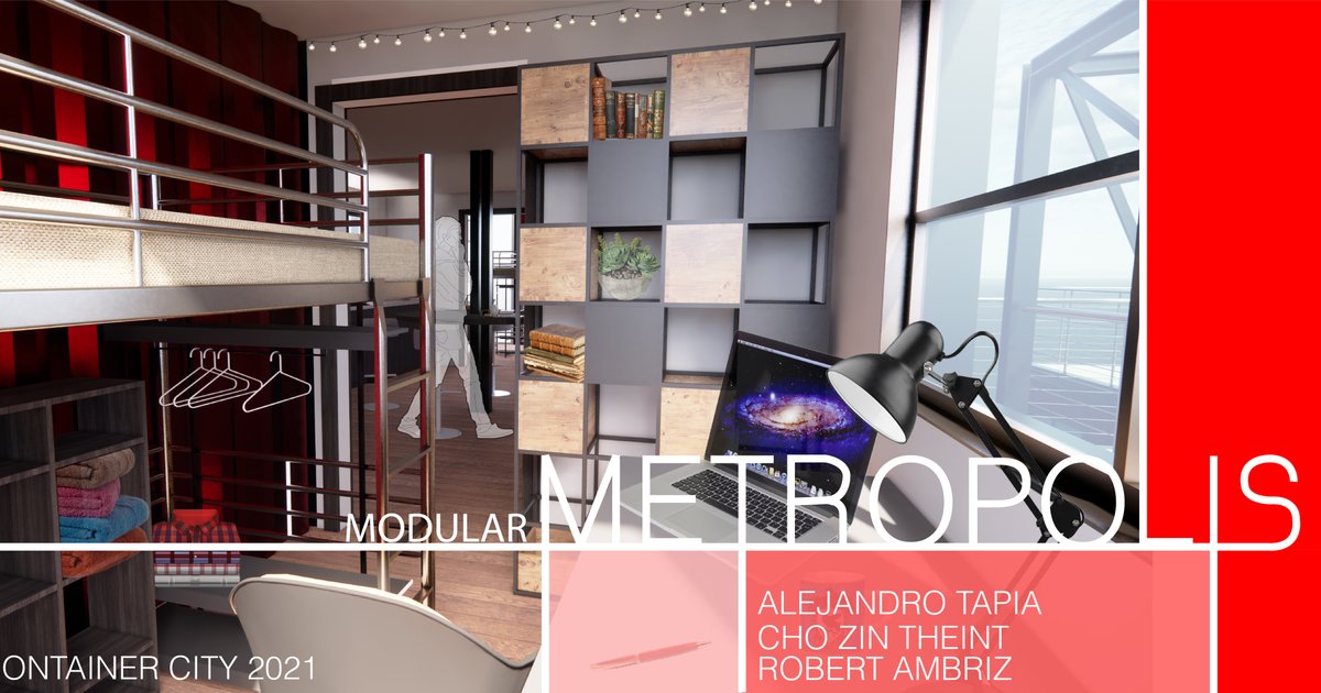 We approached the project by determining that it would be best to combine two 40’ long containers to create a unit, which would provide 3 bedrooms for 3 students (with the only exceptions that rule being the units found on the ground level, so as to create ADA compliant units), rather than providing one container per student, densifying the “container city” furthermore. Due to the 2 containers being combined, part of the containers’ structure became altered, providing columns for the necessary supports, while using those columns to create a grid. From that grid, the plans were developed, as the grid facilitated the separation of spaces. Because the containers were combined in pairs, one was left over which was repurposed as an enclosed part of the roof deck.