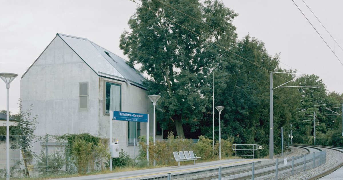 A striking monolithic concrete house near Vienna blends raw materiality, spatial complexity, and private garden living amidst railway infrastructure.