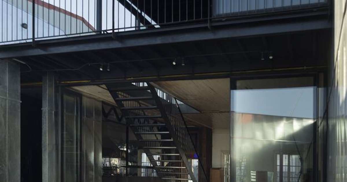 This new upper level integrates seamlessly with the historic structure by using restored wooden floor beams and Oregon pine boards for interior cladding. On the exterior, the design utilizes corrugated zinc panels in the same original color, maintaining visual continuity with the existing materials.