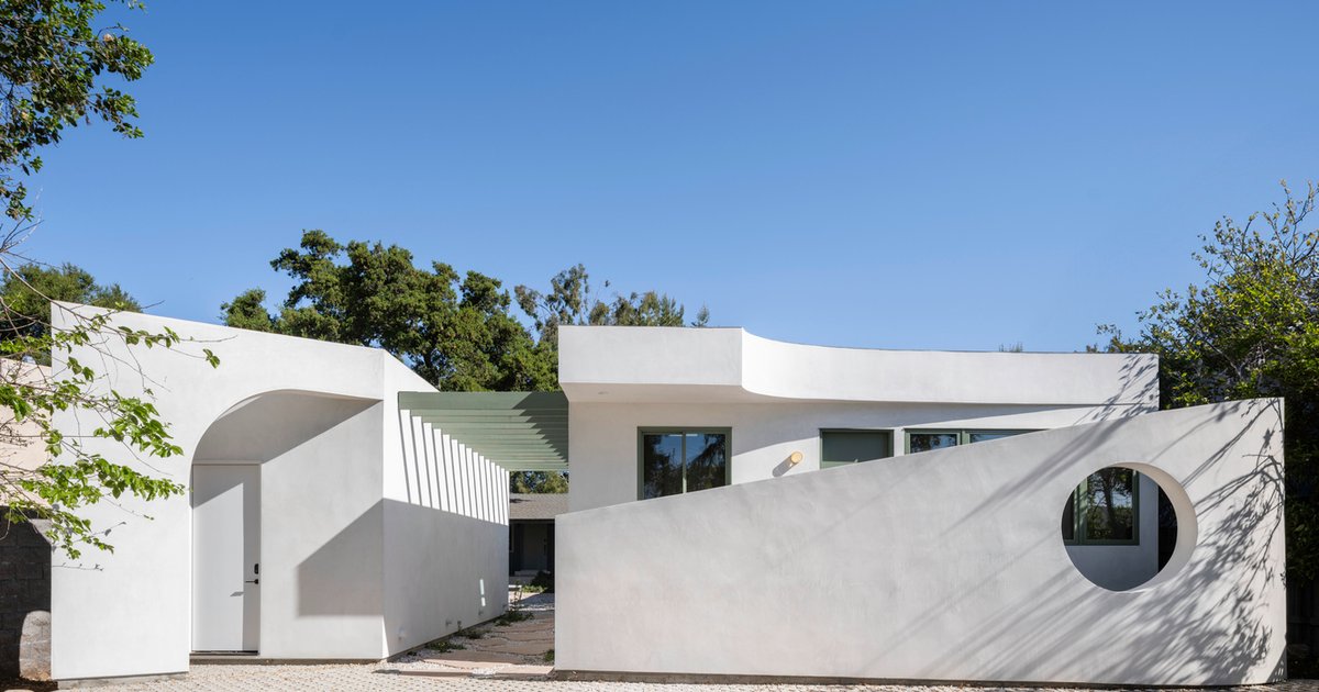 A sculptural ADU with curved forms, natural light, and a moongate façade, designed for multigenerational living beside a mid-century home.