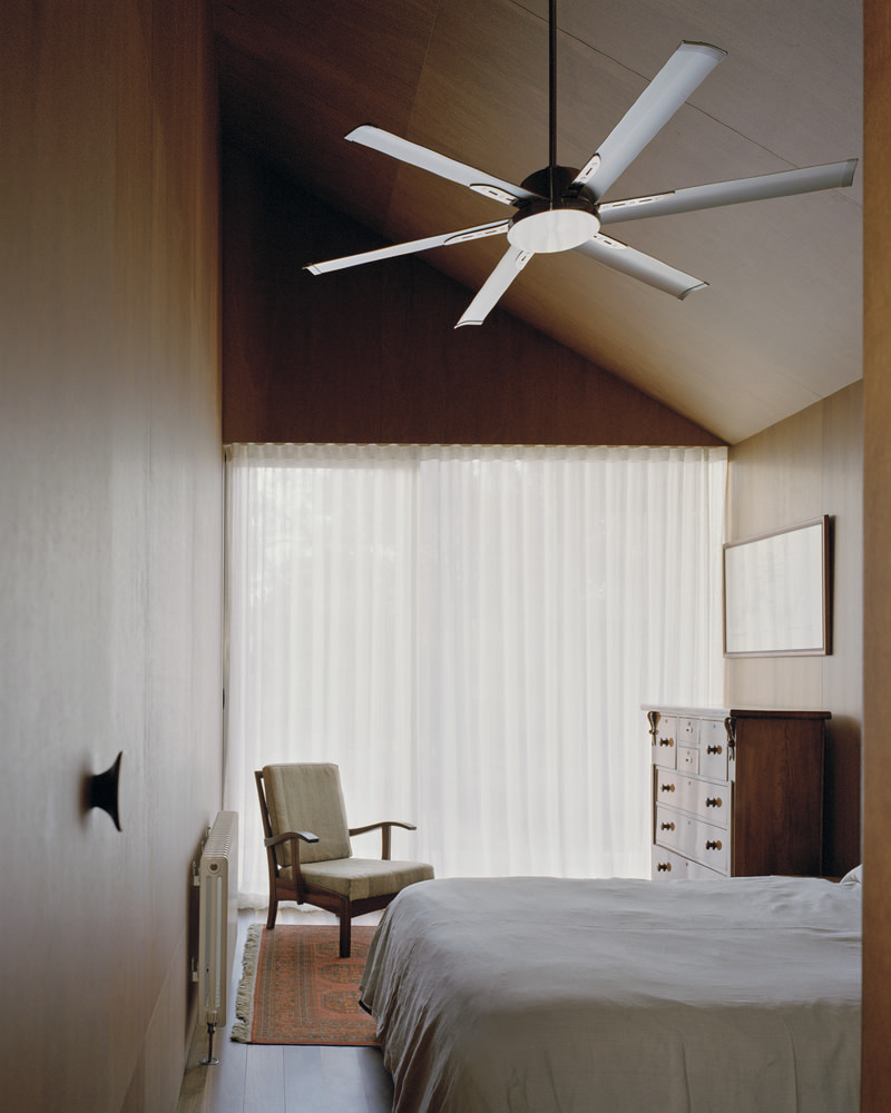 Further emphasizing sustainability, the residence operates without an air conditioning system—instead, ceiling fans and passive cooling techniques regulate indoor temperatures. The house is also positioned to maximize northern sun exposure, optimizing natural heating during colder months.