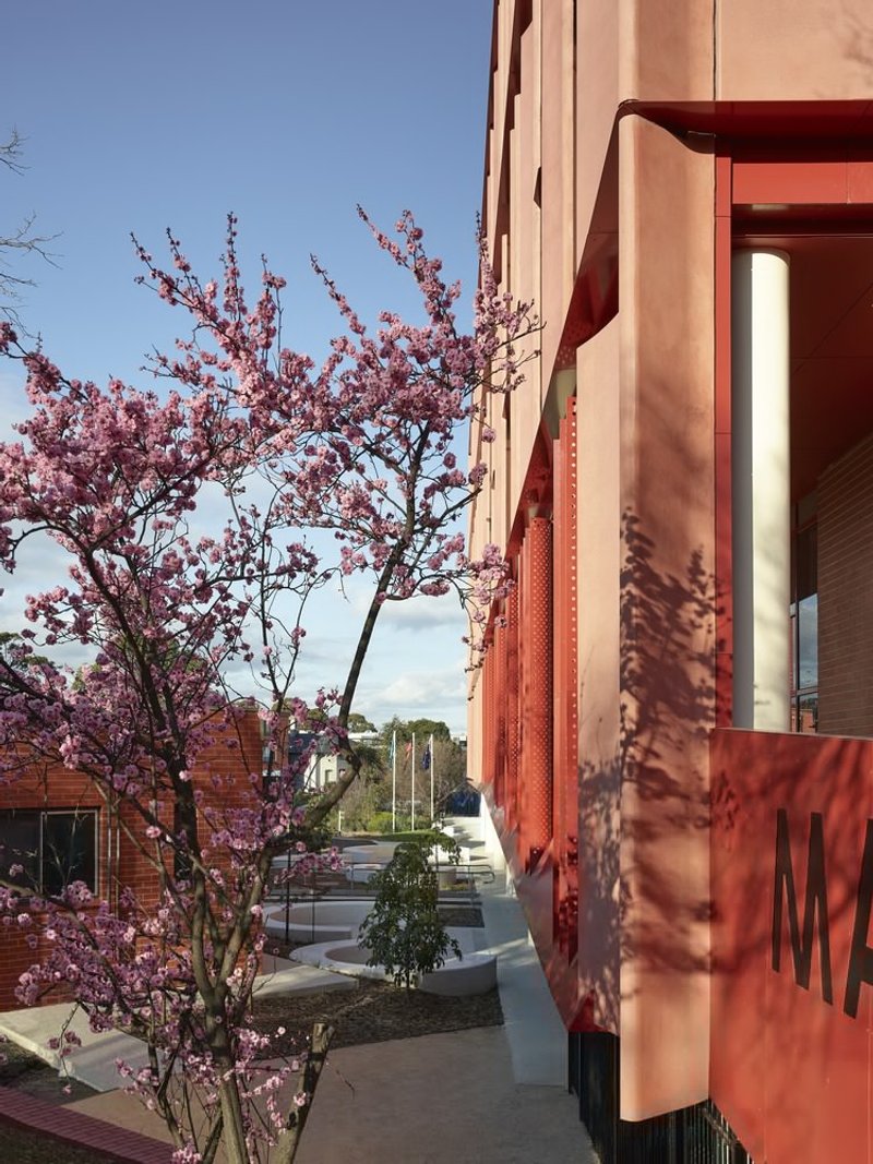 The landscape architecture—developed in close consultation with Traditional Owners—emphasizes sustainability and cultural sensitivity. Outdoor learning zones are north-facing and include rain gardens and powered spaces for music and group activities. Indigenous plant species have been carefully integrated to reflect local ecology and heritage.