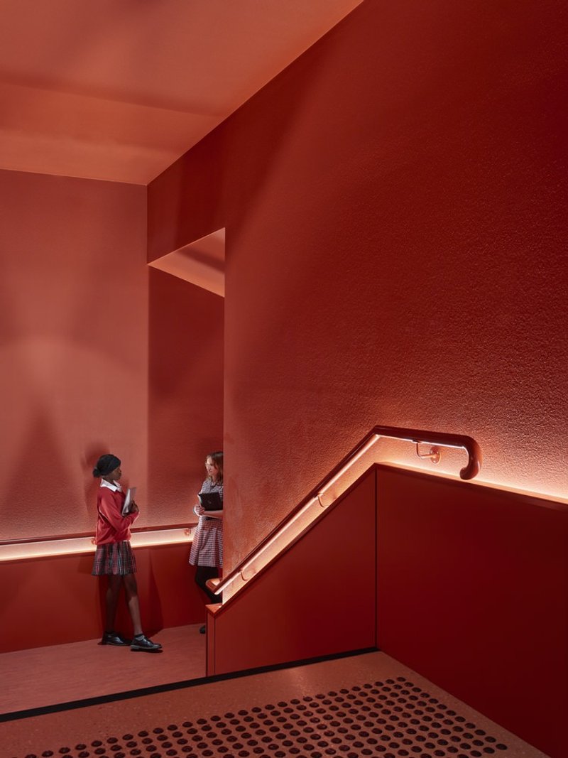 Situated within a dense urban environment, the design responds to spatial constraints through verticality, housing a broad range of facilities across five levels. The project includes junior science laboratories, flexible learning environments, music and digital technology rooms, and administration offices—strategically planned to accommodate 400 additional students.