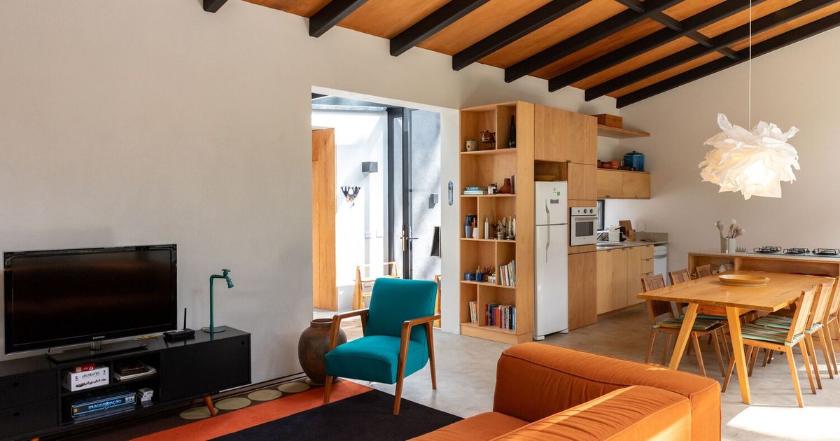 Each house features two zones: social areas with open-plan living and kitchen spaces, and private zones comprising two bedrooms. The architects approached the design with the region’s climatic challenges in mind, particularly cold temperatures and high soil humidity. As a result, both structures are elevated slightly above the ground to avoid direct contact with moisture.