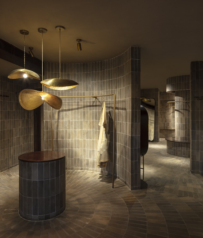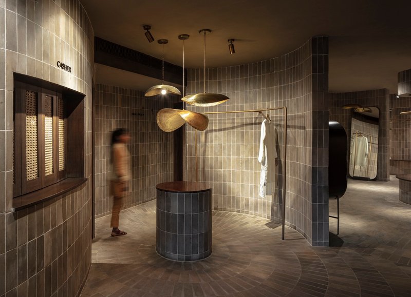 MUD MATRIX Store blends traditional Indian materials with modern design, using brick, brass, and curves to craft immersive retail architecture.