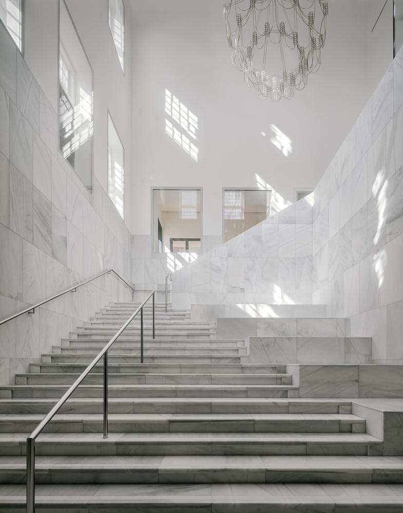 The extension of over 5,000 m² is ingeniously placed underground, preserving the palace’s baroque silhouette and historic setting. Inspired by the site’s historic connection to landscape and water, the architects integrated new water features as architectural elements, allowing light to filter dramatically into subterranean spaces. This design strategy respects the palace’s baroque order while adding a 21st-century layer of innovation.