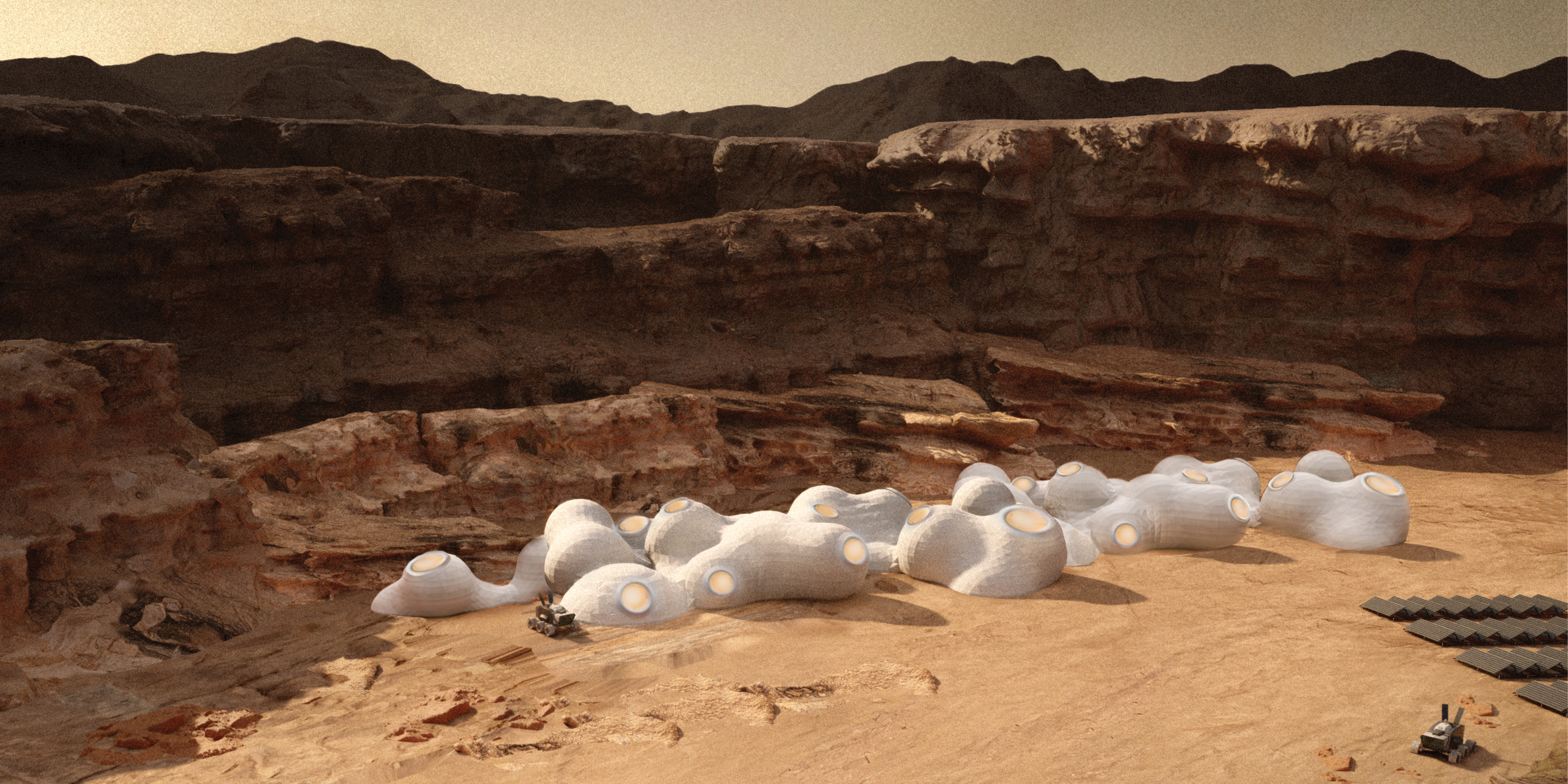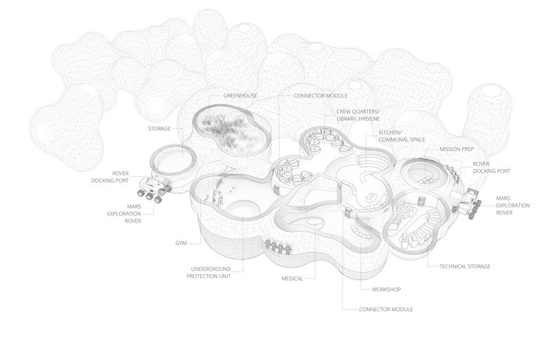 The requirements of habitat for human Mars mission have always been extreme and efficiency-oriented, but recently the human-centric experience is being highlighted. This is the part where architects and designers are needed to get involved. The main concept of this project is a novel autonomous construction method  which not only protects the inhabitants from Martian extreme environment, but also considers human comfort.