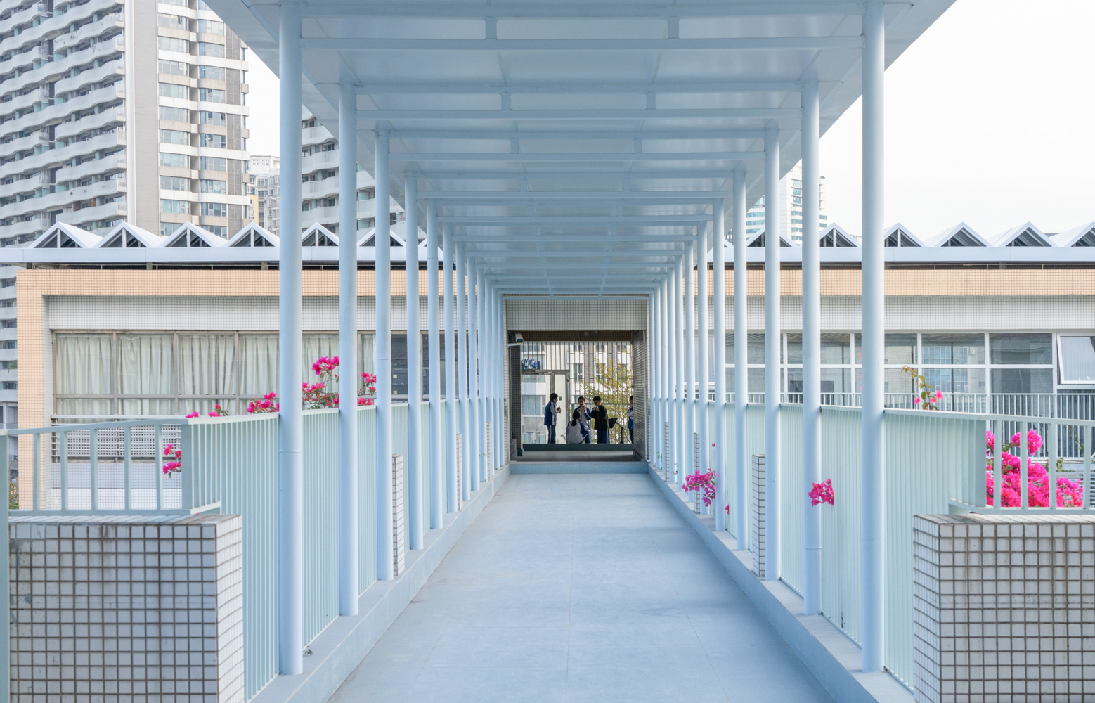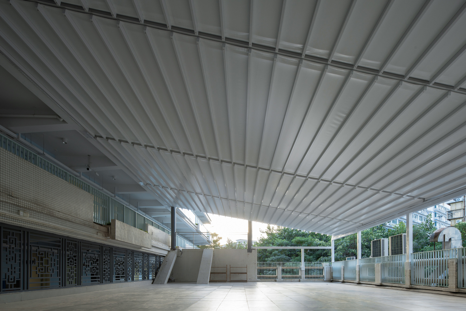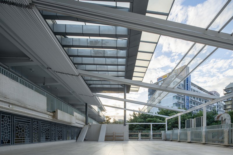 In response to the growing demand for usable space, Chen Donghua Architects introduced several semi-outdoor structures such as rooftop multifunctional sheds, roof gardens, and reading sheds. These elements not only provided much-needed space but also adapted to the subtropical climate, offering shaded areas for daily activities without the reliance on air conditioning. The vertical expansion also included the addition of mezzanine levels and sheds, making use of the building's roof to introduce new spaces and functionalities.