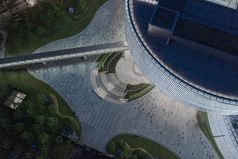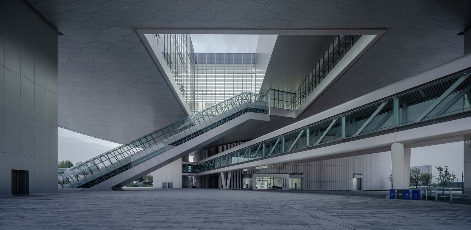 The project pushed the boundaries of construction engineering in China, becoming the first to implement super-weight, large-diameter, rigid-flexible steel truss lifting technology. It also pioneered hydrostatic leveling for dynamic process monitoring. The unique façade — a patented aluminum louver system — integrates solar shading, floodlighting, and a digital media curtain wall, all while achieving a pure white and dreamlike finish that reinforces the “treasure box” metaphor.