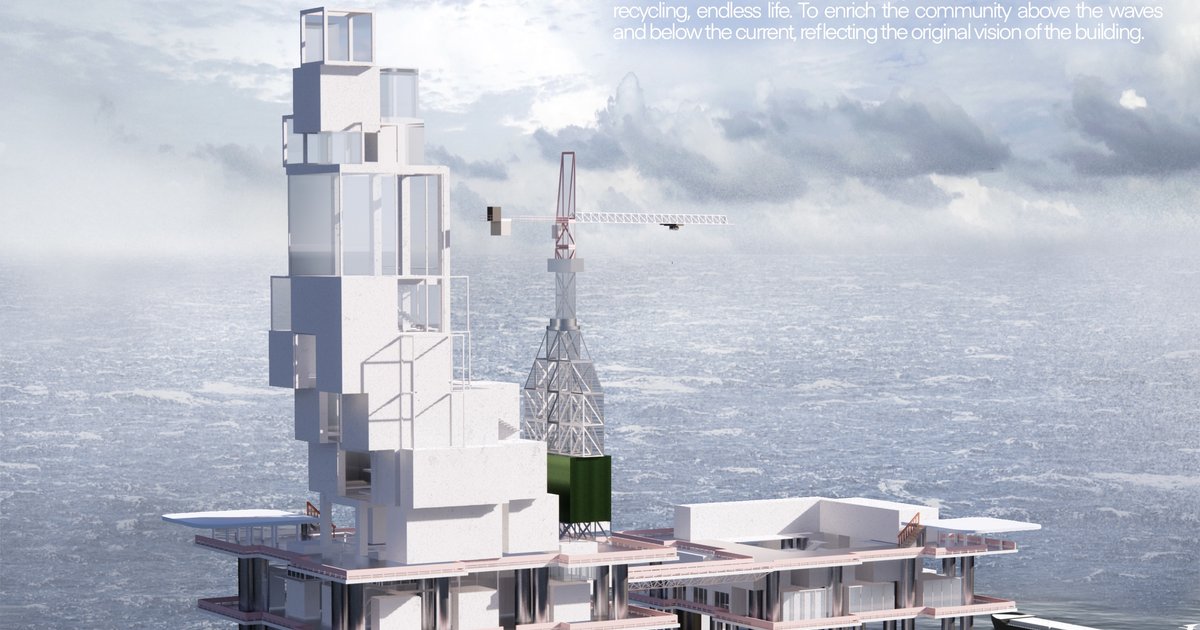 As such structures in offshore settlements, offshore drilling platforms form an extremely vivid image of industrial heritage cases due to their strong visual and sensory impact. The design will transform an abandoned oil rig into a museum. Oil rigs act like an "intermediary" concept of land-sea connectivity, resulting in a smooth shift in function and space. In this way, water and sea have become the main theme of the water museum, making it focus on forming a three-level relationship: the deep sea is far away, the Mediterranean Sea is adjacent and the Adriatic Sea is near.