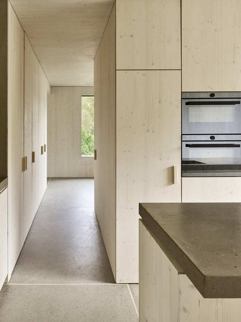The structure is composed of prefabricated wooden panels, specifically 3-ply timber, which remain exposed throughout the interiors to create a warm, tactile ambiance. These natural materials reflect the sustainability ethos of the project and reduce the environmental footprint through modular off-site construction techniques.