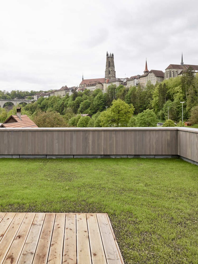 Compact timber tower by LVPH Architectes in rural Fribourg, featuring prefabricated wood, minimal footprint, and flexible apartment layouts.