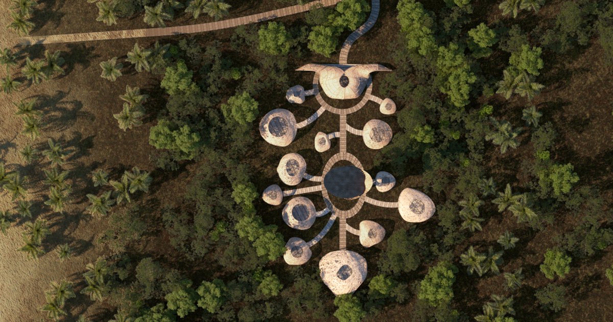 Inverted Architecture Installation by Studio Link-Arc blends mycelium, sustainability, inverted design, ecological cycles, and urban adaptive architecture in Shenzhen.