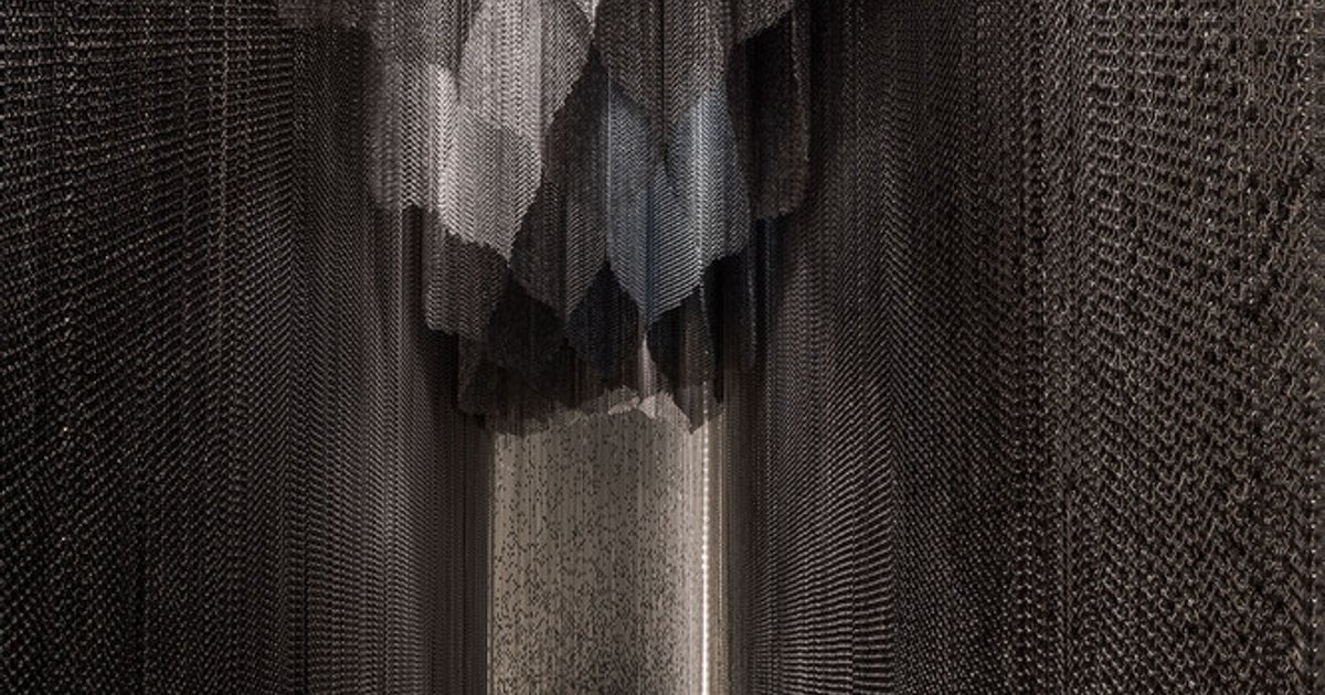 Aluminum chain curtains line the stairway, capturing and reflecting light in its many forms—silhouettes, shadows, and glimmers—while eliminating distractions from materials or historical references. This abstraction allows visitors to focus entirely on the essence of light.