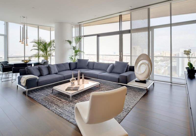Next Level’s podium integrates a vibrant shopping mall with 150 retail outlets and a 2,500 sqm state-of-the-art movie theater, making it a cultural and social hotspot. Transparent decorative pools and landscaped areas totaling 7,500 sqm enhance the urban environment, creating a harmonious blend of private and public spaces. These design elements introduce a serene, light-filled atmosphere, elevating the overall shopping and leisure experience.