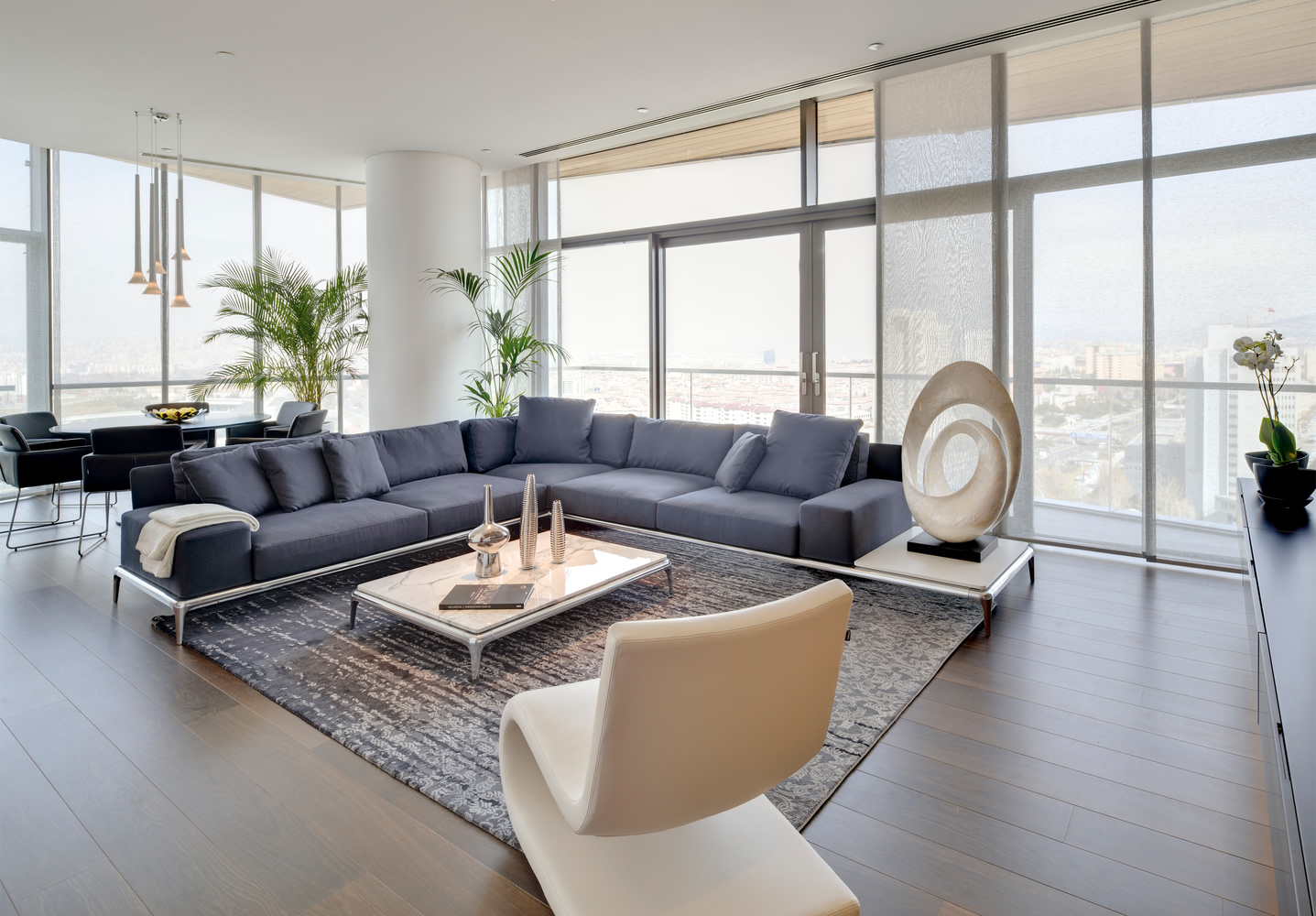Residence Tower: The 20-story Residence Tower emphasizes the human experience. Floor-to-ceiling glass panels, 4-meter ceiling heights, and expansive terraces maximize natural light and offer panoramic views. Residents benefit from luxurious communal amenities, including lounges, café-bars, libraries, and terraces, creating a socially engaging environment while maintaining privacy.