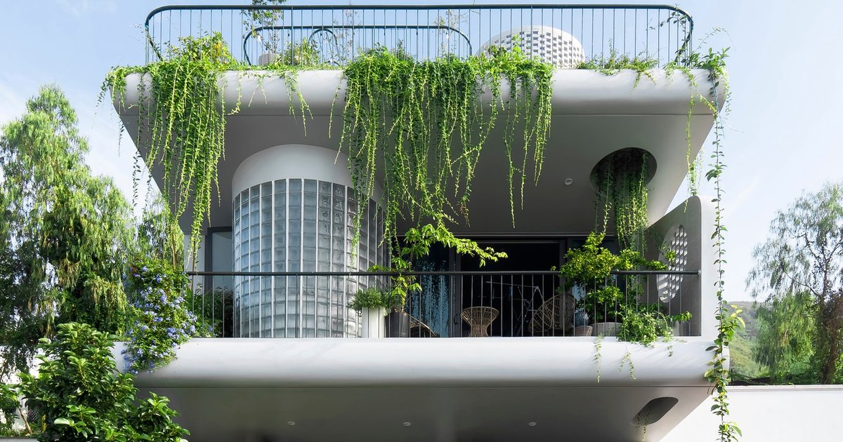 The design of the Nha Trang Pool Villa revolves around the concept of balance, with the goal of creating harmony between the natural elements and the human experience. The residence is situated against the backdrop of a mountain, with lush greenery surrounding it. The building itself uses curved architectural volumes, reducing wind resistance while allowing for the smooth passage of cool breezes and warm sunlight. These curves enhance the aesthetic appeal of the villa, creating a sense of flow and openness within the design.