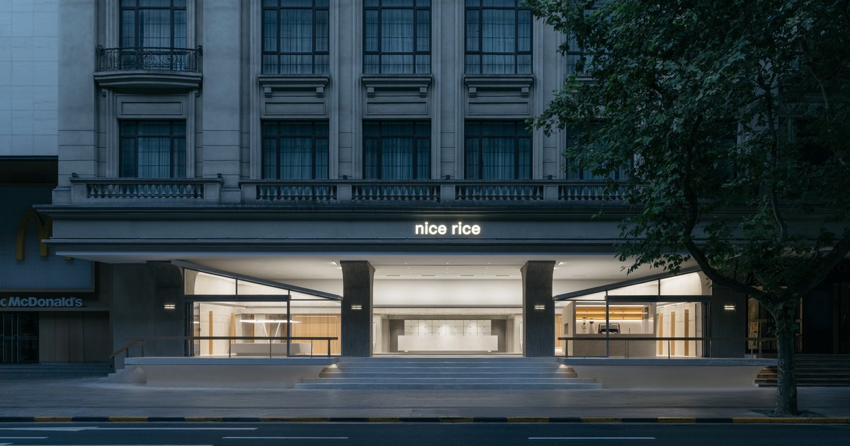 Nice Rice Shanghai Flagship Store blends traditional Chinese architecture with modern minimalism, creating a cultural, social, and retail hub.