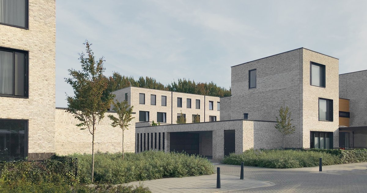 - Hand-molded light bricks sourced from Façade Beek in Limburg, enhanced with white cementation for a striking contrast against dark grey window frames.