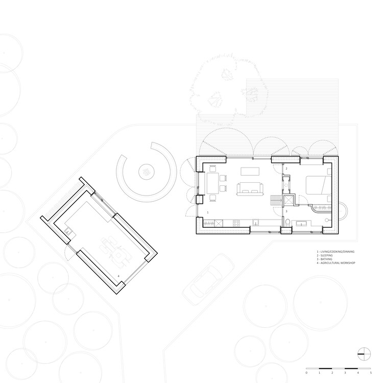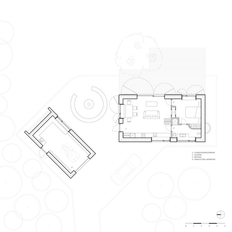 Rather than imposing on the environment, the buildings sit quietly within the woodland, creating a dialogue between: