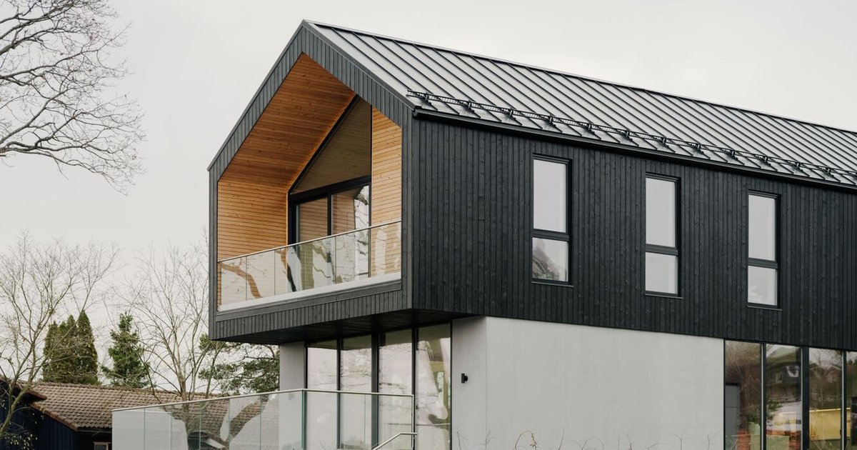 The material palette is durable, regionally contextual, and low-maintenance, with black steel roofing, ore pine cladding, and fiber concrete panels reinforcing the development's timeless, minimalist aesthetic.