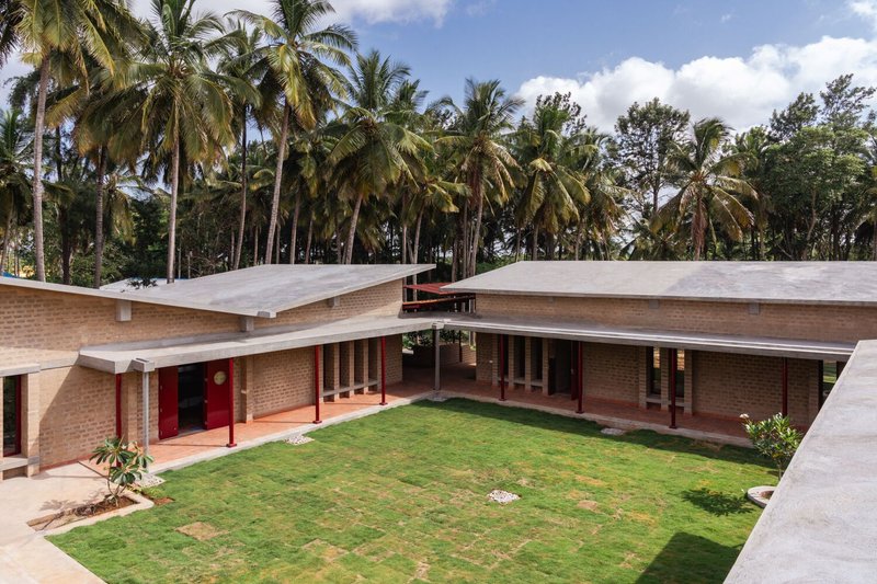 Located in Bylakuppe, Karnataka, the Organic Research & Training Centre (ORTC) is a pioneering institution dedicated to promoting sustainable agriculture and organic farming practices within the Tibetan community. Designed by Sejpal & Raje Architects in 2021, this 670 m² facility was completed in 2023 and serves as a critical hub for research, training, and community engagement. Bylakuppe is the second-largest Tibetan settlement in India, home to numerous monasteries, temples, and universities, making ORTC a vital educational and cultural landmark.