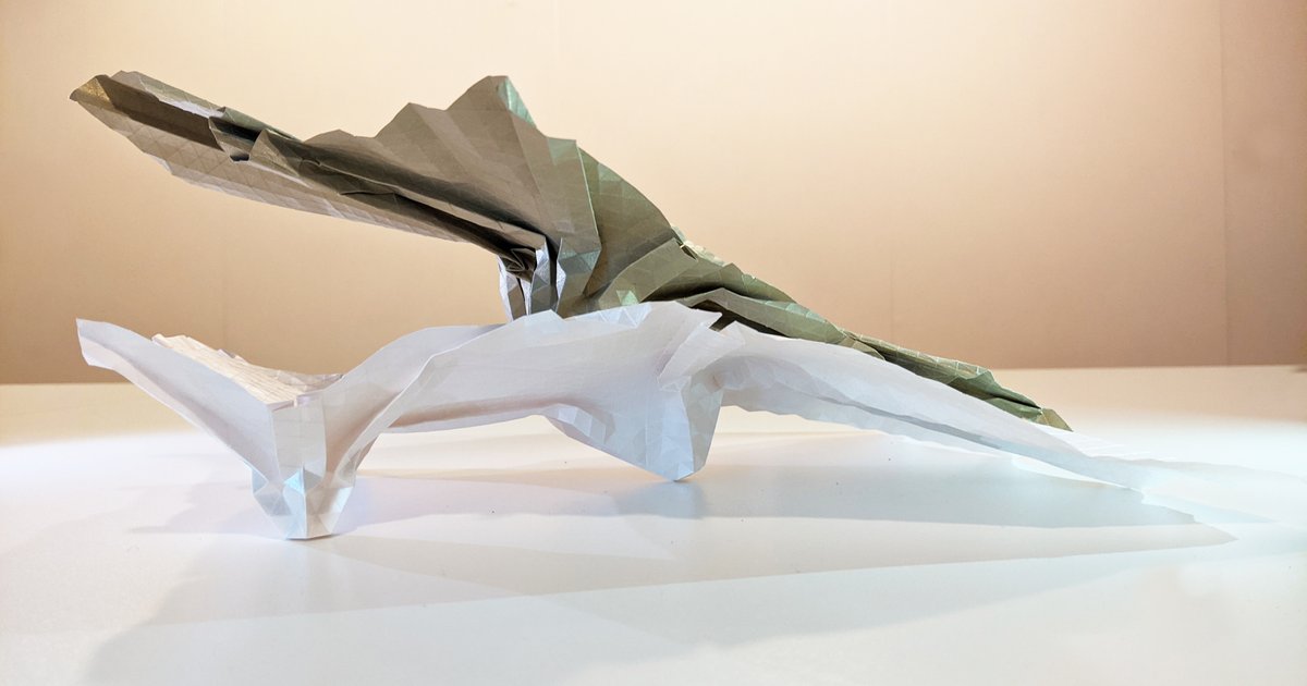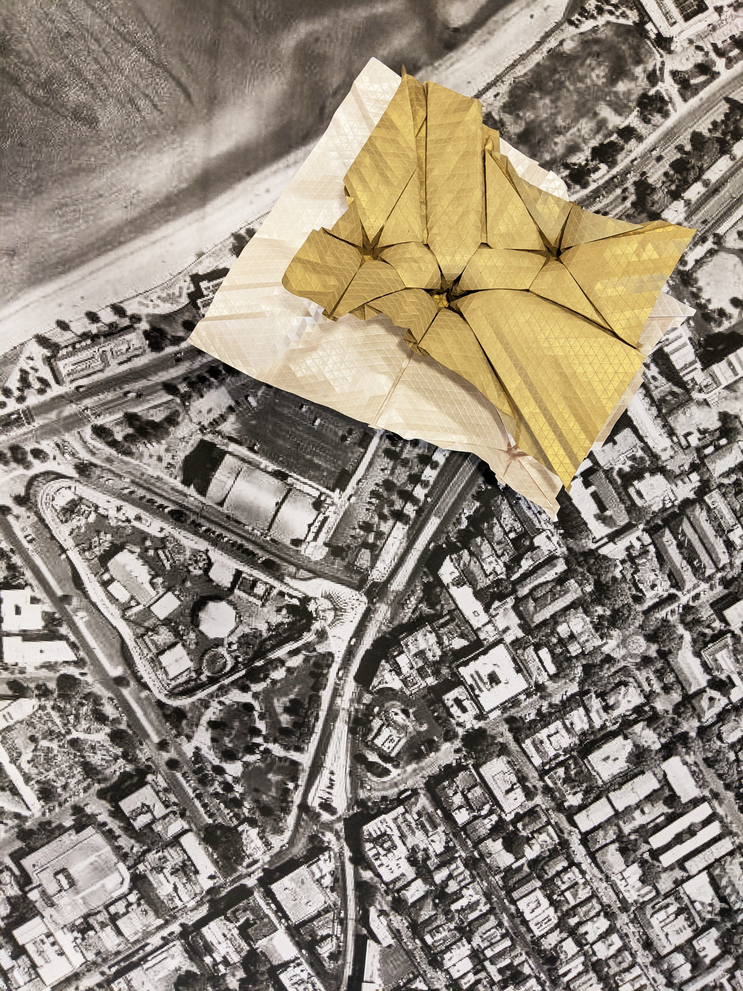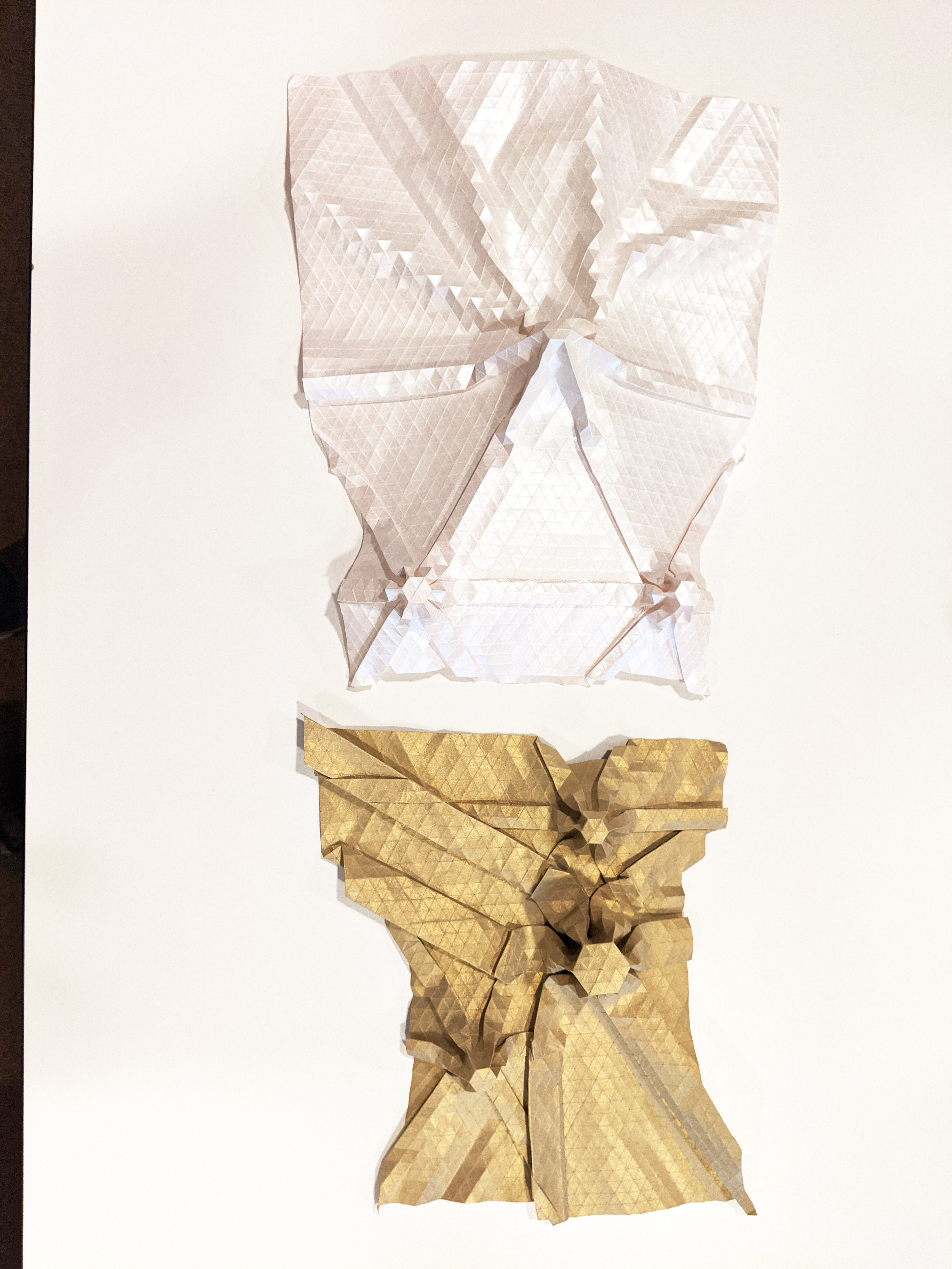 We finally decided upon a multi-level architectural project utilizing both of these folded origami works.