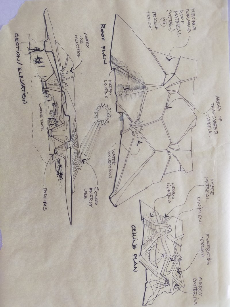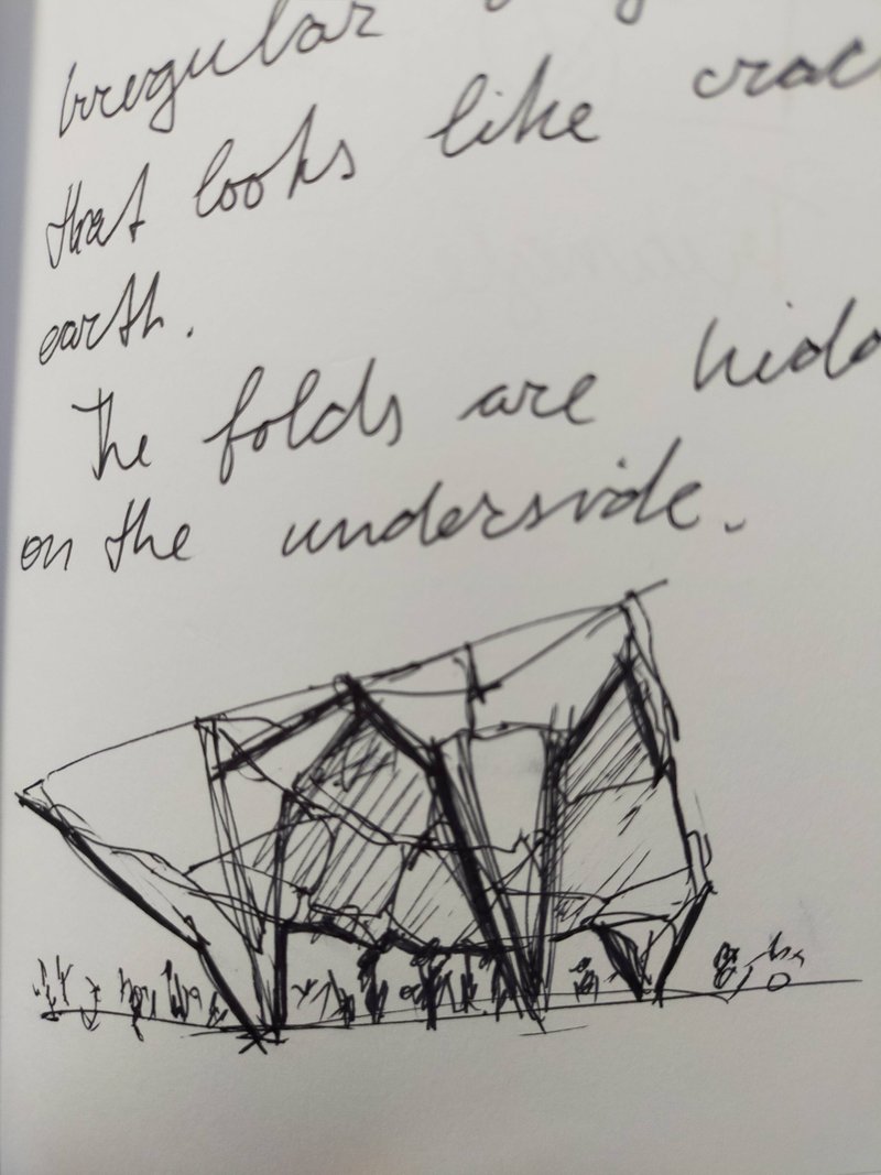 We created new conceptual sketches based on this folded origami model.