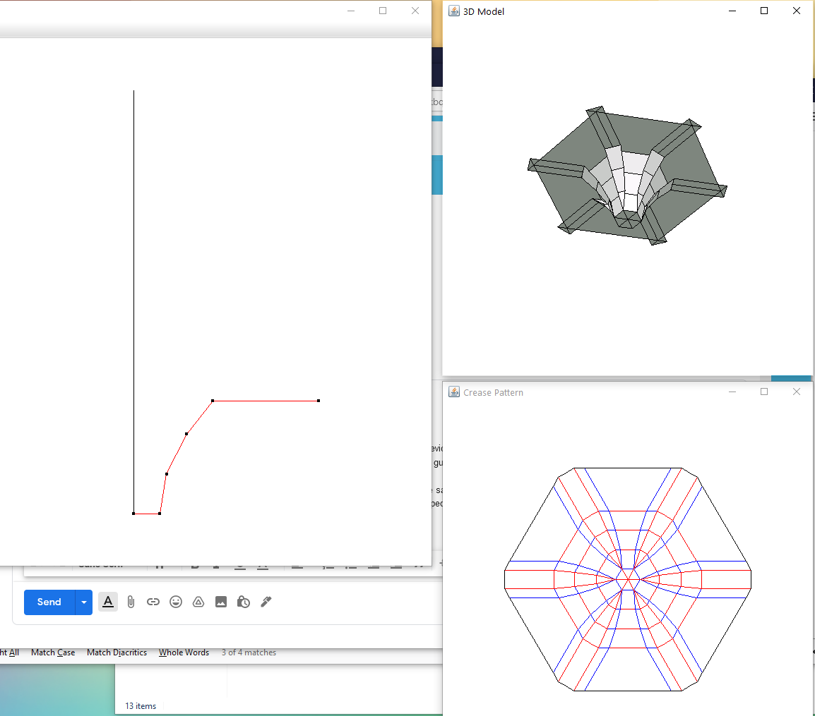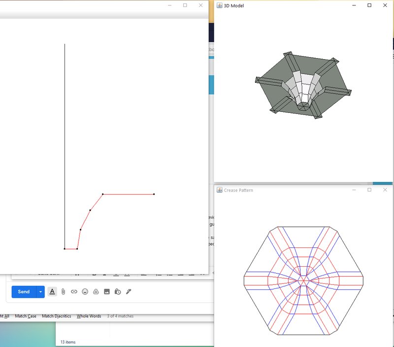 We began the origami design process using the software Ori-revo by Jun Mitani to sketch a column and generate the crease pattern.
