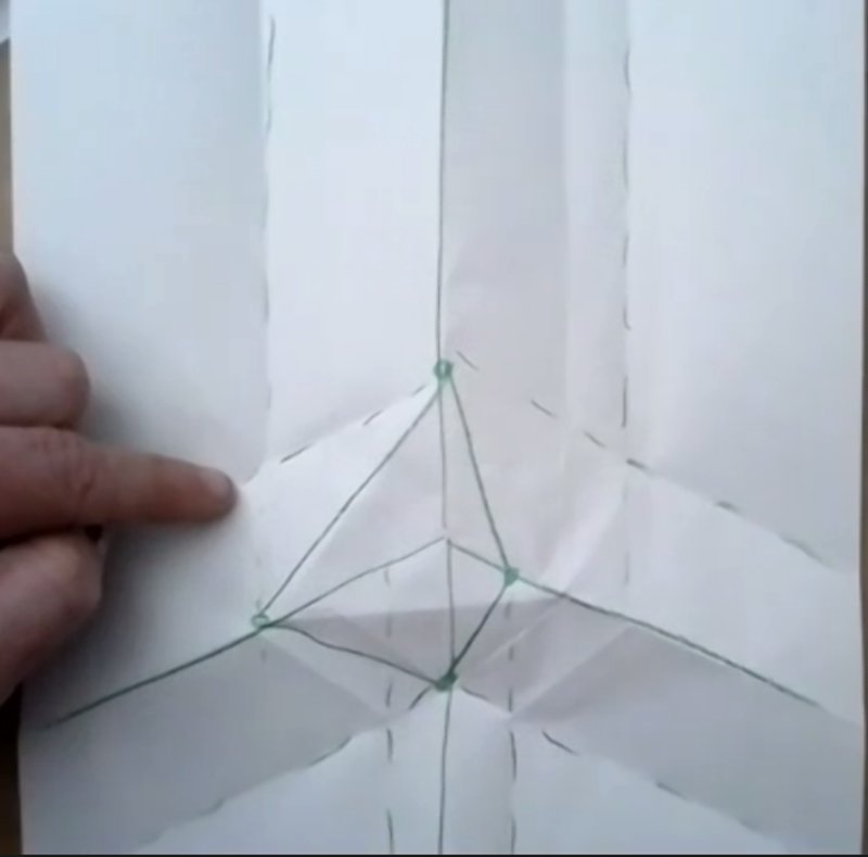 Thankfully when we folded the model, the intersection with three incoming pleats did not require a forth set of pleats coming out. We believe this was due to integer size proportions between the three columns.