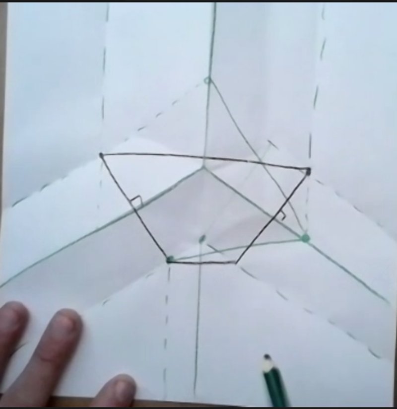 We then sketched a crease pattern involving three of these columns, of different sizes, in one A3 sheet of paper.
