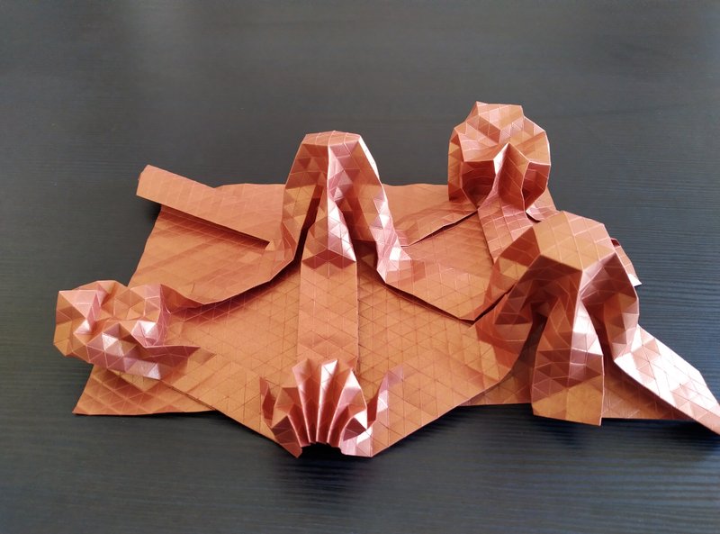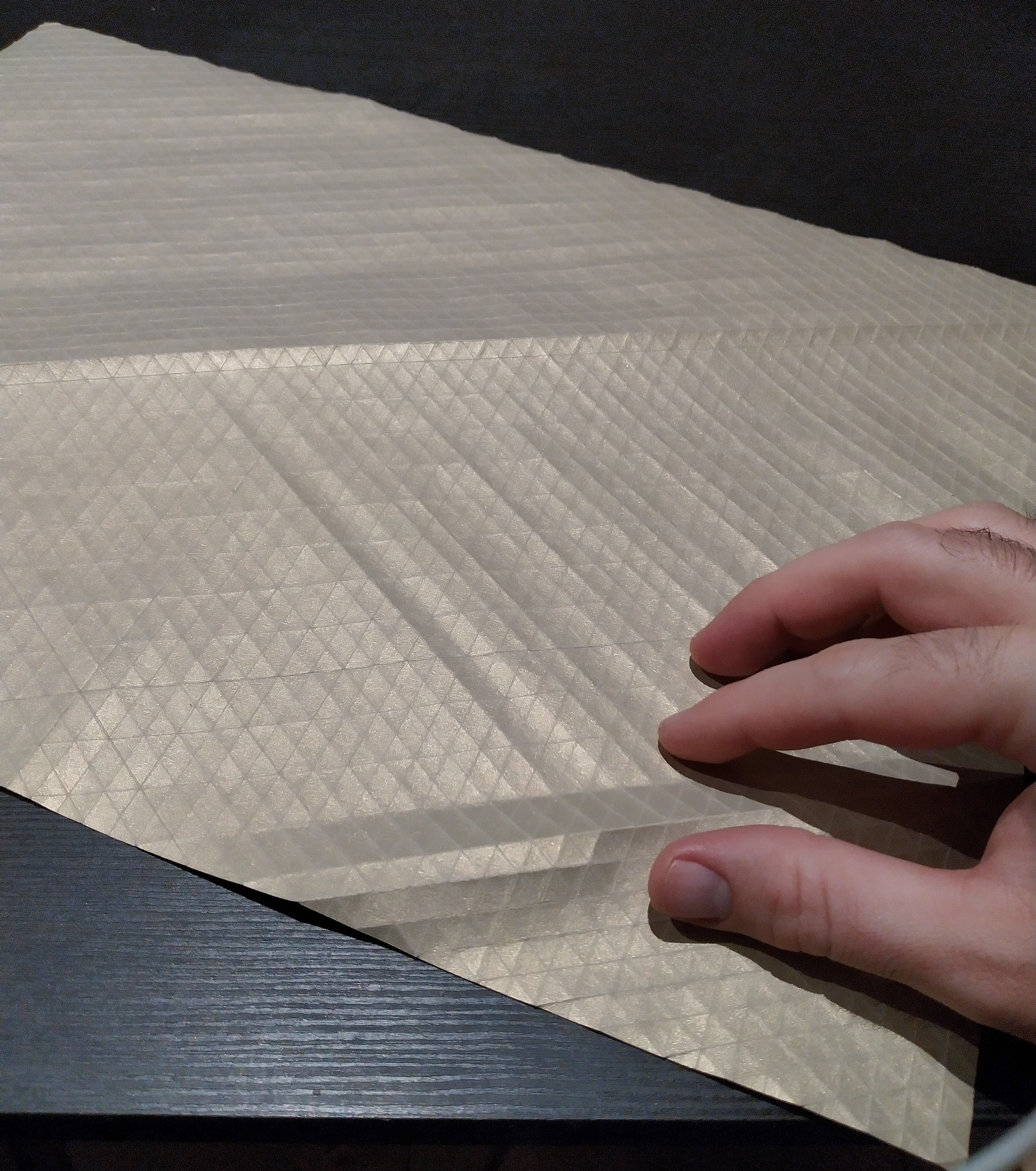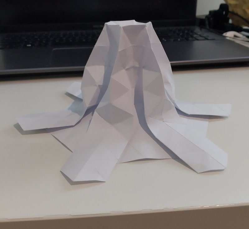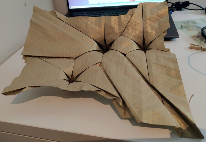 We decided to further constrain ourselves, limiting ourselves equal sized pleat widths for all columns. We folded a new sample origami folding.