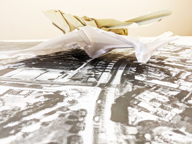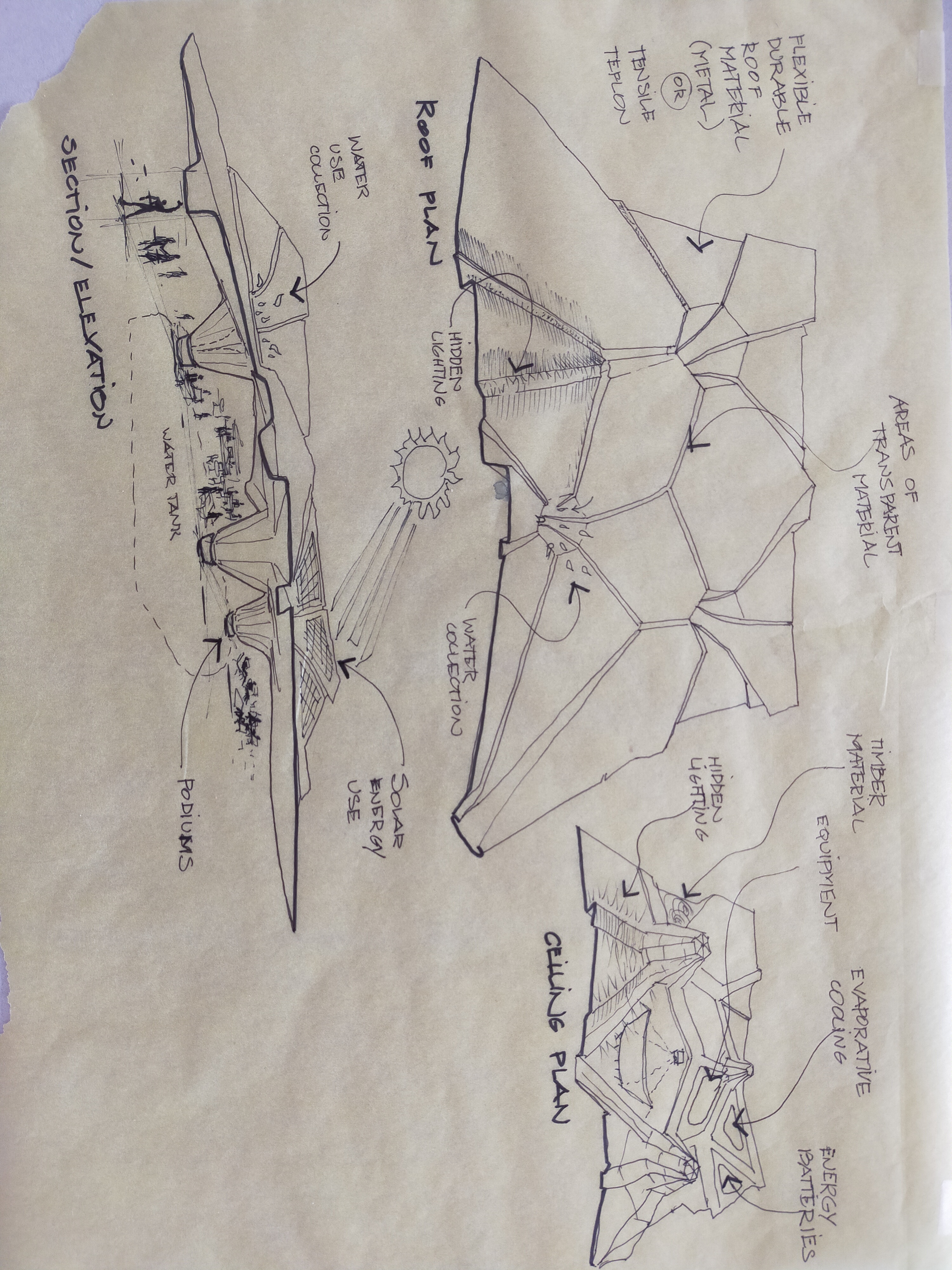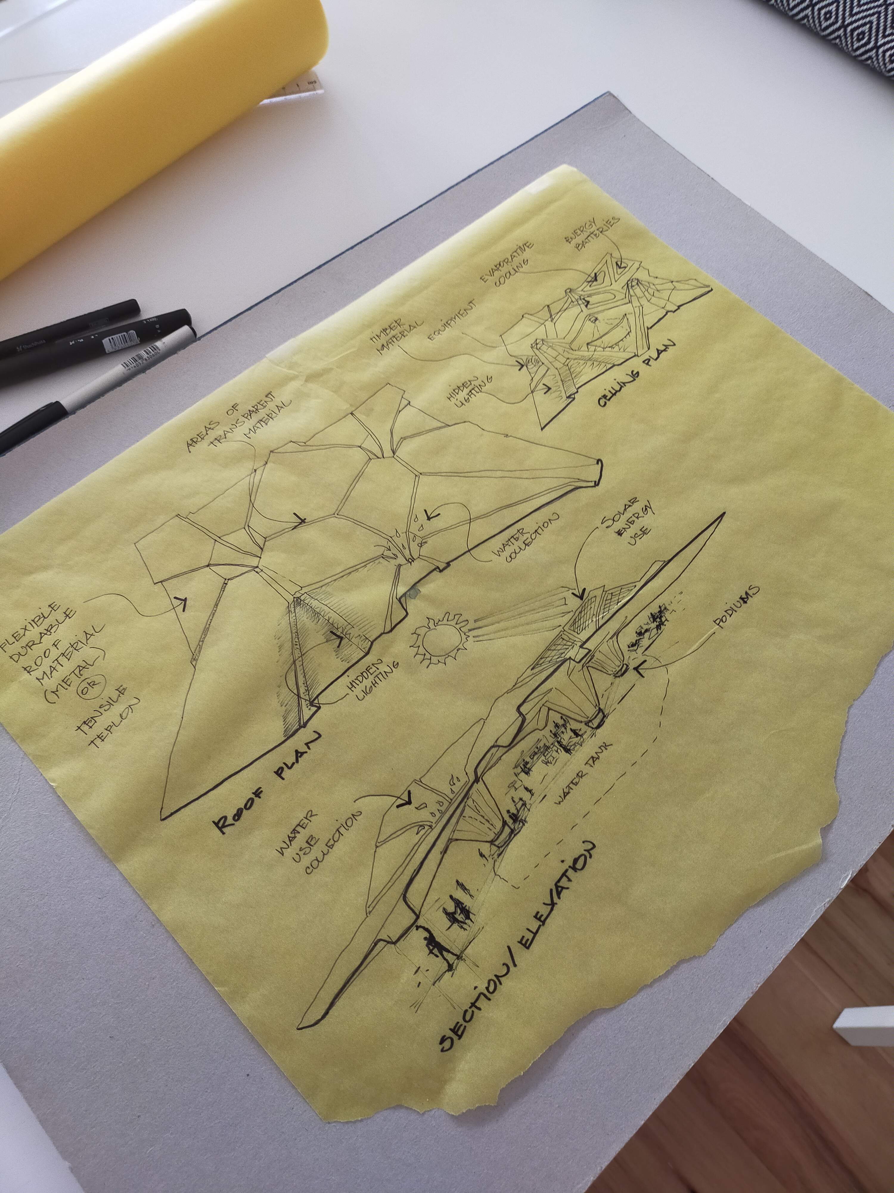 Based on this folding we drew new conceptual sketches, including our first idea of a multi-level design.