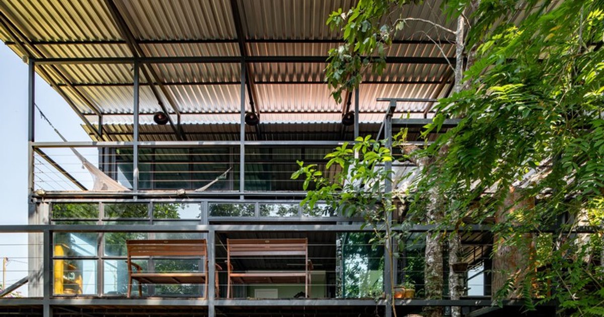 Paricatuba House, designed by iapó estúdio, is a contemporary container house in Brazil that embraces adaptive reuse, environmental comfort, and a deep connection to the Amazonian landscape. Located in Vila de Paricatuba, approximately 40 minutes from Manaus, the project sits within lush vegetation and directly faces the Rio Negro, one of the most striking natural settings in the Amazon region.