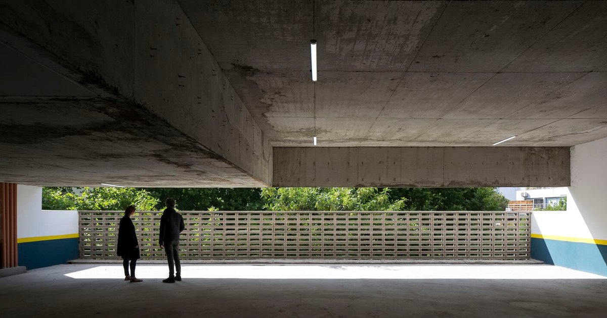 Constructed in reinforced concrete, the building balances robustness with openness. The median perimeter walls are crafted from white plaster masonry, creating a clean, minimal aesthetic, while the facade in concrete block masonry ensures both ventilation and natural illumination of the raised levels. These choices reflect the architects’ commitment to blending practical solutions with architectural quality.