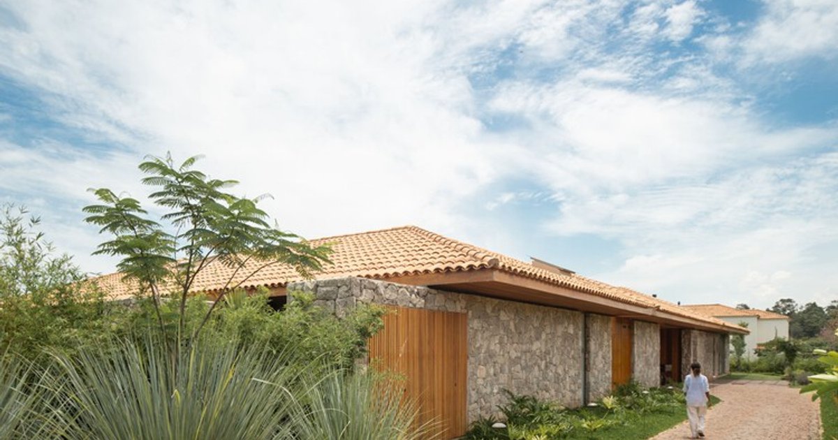 Symbolically and functionally, the house is organized into three main sectors—social, intimate, and service—each clearly defined yet interconnected. The composition is crowned by three ceramic-tiled roof sections, a mandatory feature of the residential condominium. Rather than treating this as a limitation, the architects embraced the requirement, using it to reference traditional farmhouses while achieving structural lightness and architectural coherence.