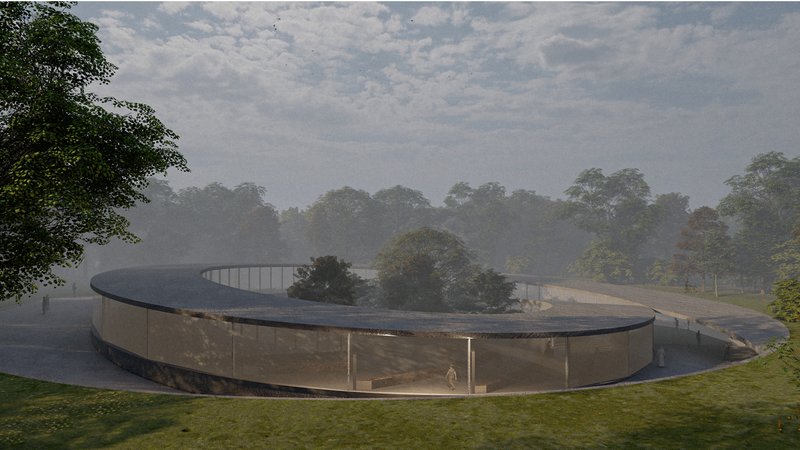 The shape of the building and its integration into the terrain is related to the main idea of the project, which is to observe the environment from different perspectives. In addition to the literal meaning, the concept of perspective relates to the perception of difficulties and problem solving in everyone’s life as well. Thanks to slight changes in the path’s inclination one can see the building from various points of view. Additionally, it symbolizes ups and downs in everyone’s life through time passing viewpoint with remembrance about the past and hope for the future. The bottom part of the structure is made out of stone which gives an association of assurance and timelessness of being stable while the lighter upper part, consisting of matt glass panels presents transparency, honesty and serenity. In the lower part is placed technical infrastructure but there is also accounted room for magazines which might keep some accessories needed for specific celebrations.