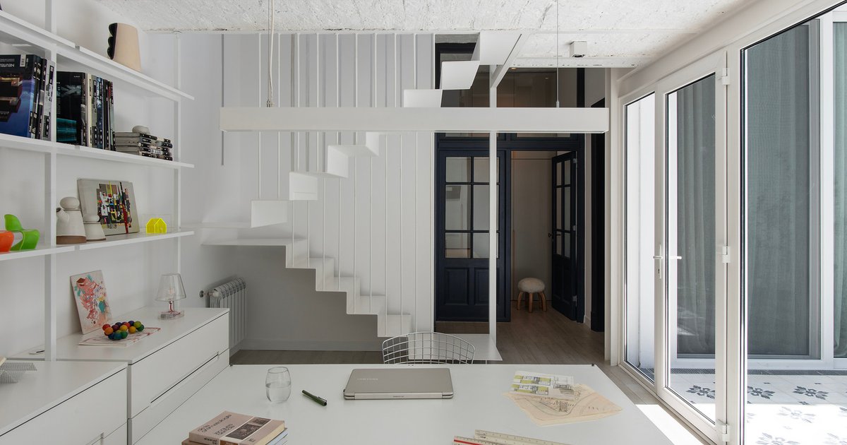 In a departure from conventional layout patterns, the social and communal spaces—such as the kitchen and living room—were placed on the upper floor. This allowed for the creation of a new green terrace above the previous roof and a patio that connects visually and physically with the surroundings.