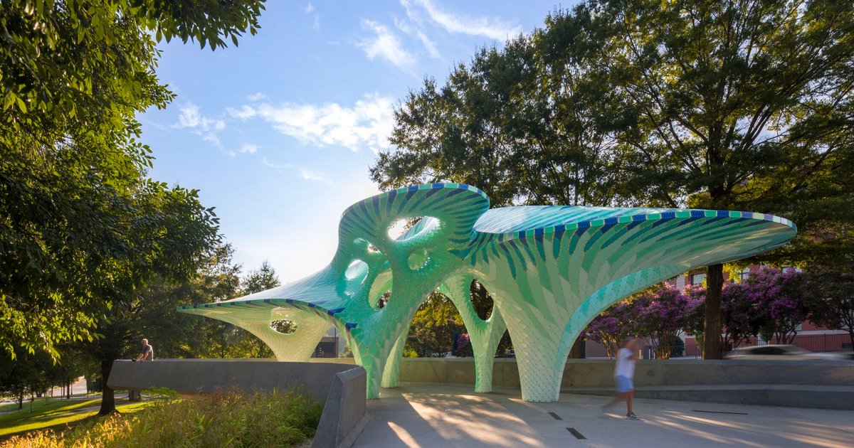 A sculptural aluminum canopy creating immersive public space, blending art, architecture, and landscape to connect Knoxville’s park, neighborhoods, and cultural districts.