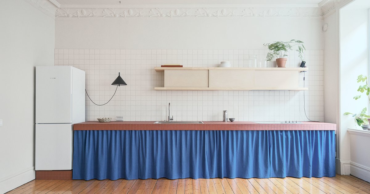 Adaptive 78 square meter Gothenburg apartment by mnmt repositions rooms, unifies with terracotta, and layers flexible low-tech mobile elements throughout.