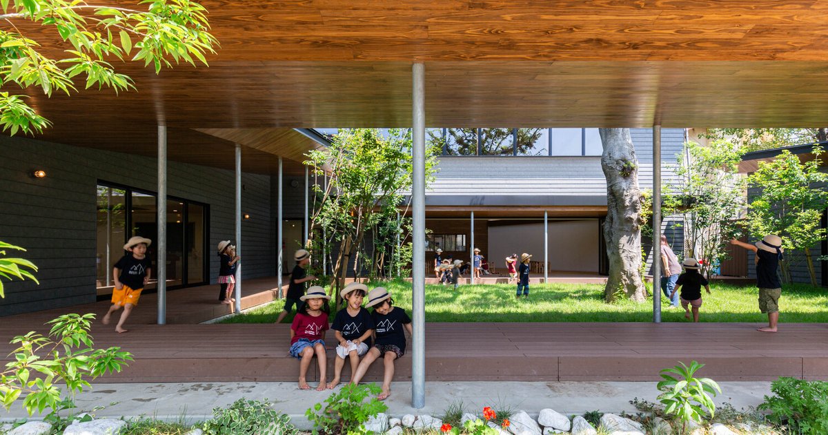 Studio: HIBINOSEKKEI. The renovation of MJK Kindergarten in Moji, Kitakyushu, is one of the gentlest and most decisive acts of architecture on this list. Rather than erase the site's history, the designers preserved the trees that had stood in the playground since the school's founding, building a central courtyard around them. The external corridor — a modern echo of the Japanese engawa — lets children feel rain and wind without leaving the building. The message to every child inside is clear: the world you are learning about is right here.