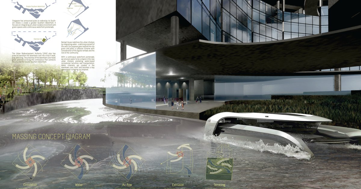 VORTEX was the most-engaged infrastructure project on uni.xyz in 2025, collecting 389 likes and 96 comments. Developed in response to Singapore’s Greater Southern Waterfront masterplan, it proposes a coworking and coliving environment that fully integrates green and blue systems into its urban fabric. The design argues that Singapore’s identity as the Garden City must be carried forward through building, not just landscape.