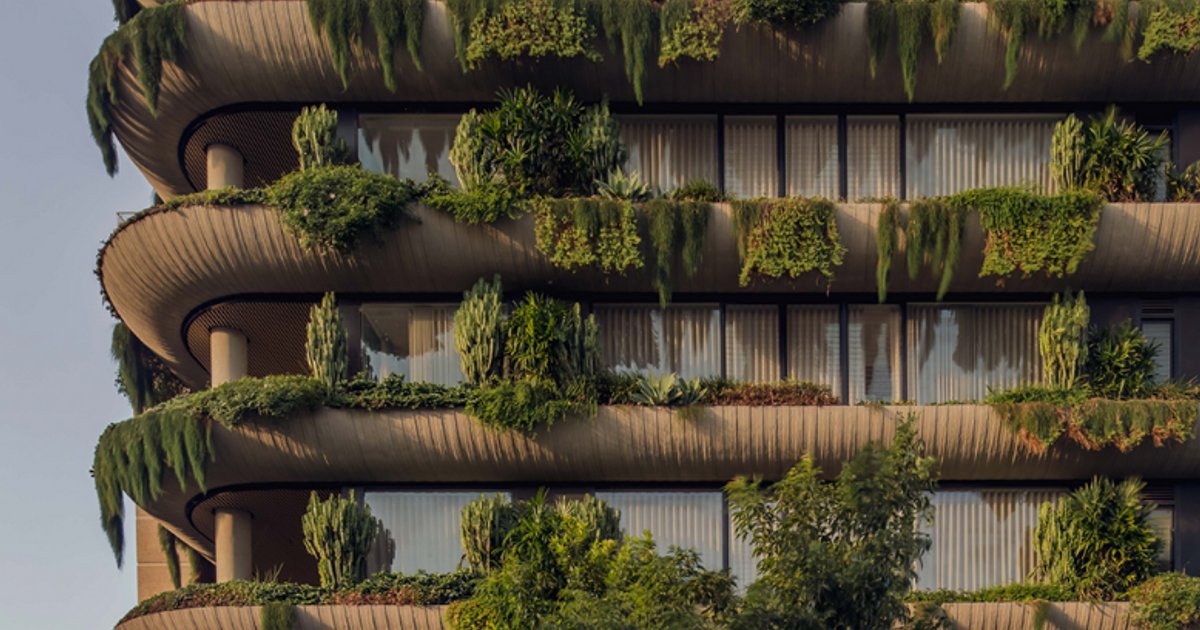 Maison New Farm stands as one of the most fully realized multi-residential projects to emerge from Australia in recent years. Graya and Joe Adsett Architects designed this 2,100 m² Brisbane complex as a soft green architectural gesture within a suburb defined by harder Brutalist edges. Curved planter boxes, the first of their kind in the area, wrap the facade and dissolve the boundary between built form and subtropical landscape.