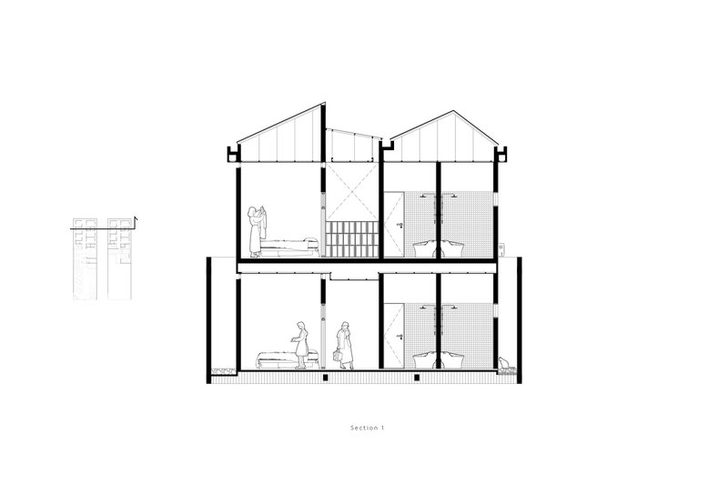 Inside, the rooms range from 9 to 12 square meters and feature two openings to ensure natural cross-ventilation. Each unit is compact yet thoughtfully designed for comfort and privacy. Furniture accommodates local living habits, including floor seating for studying—a familiar, culturally resonant detail that allows students to feel at ease.