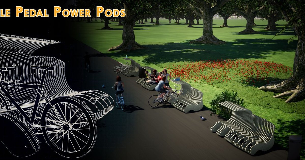 An eco-friendly pedal-powered urban furniture design combining fitness, renewable energy, and smart technology for healthier cities.