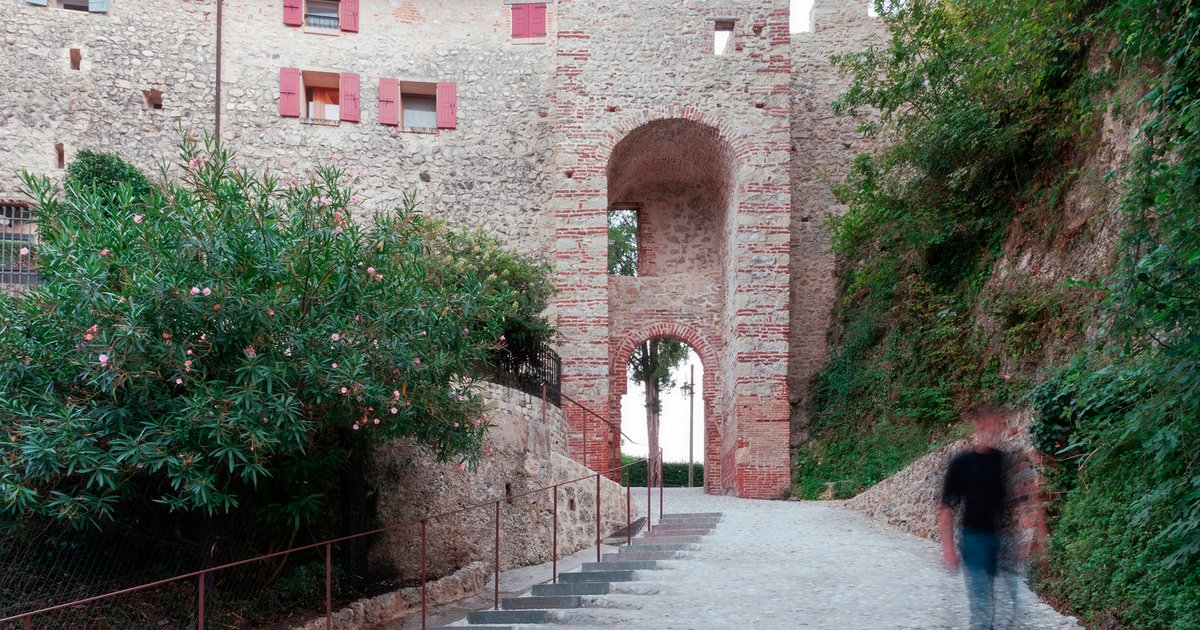 Medieval gateway in Asolo restored with local materials, enhancing historical identity, urban connectivity, and landscape views through sensitive conservation.