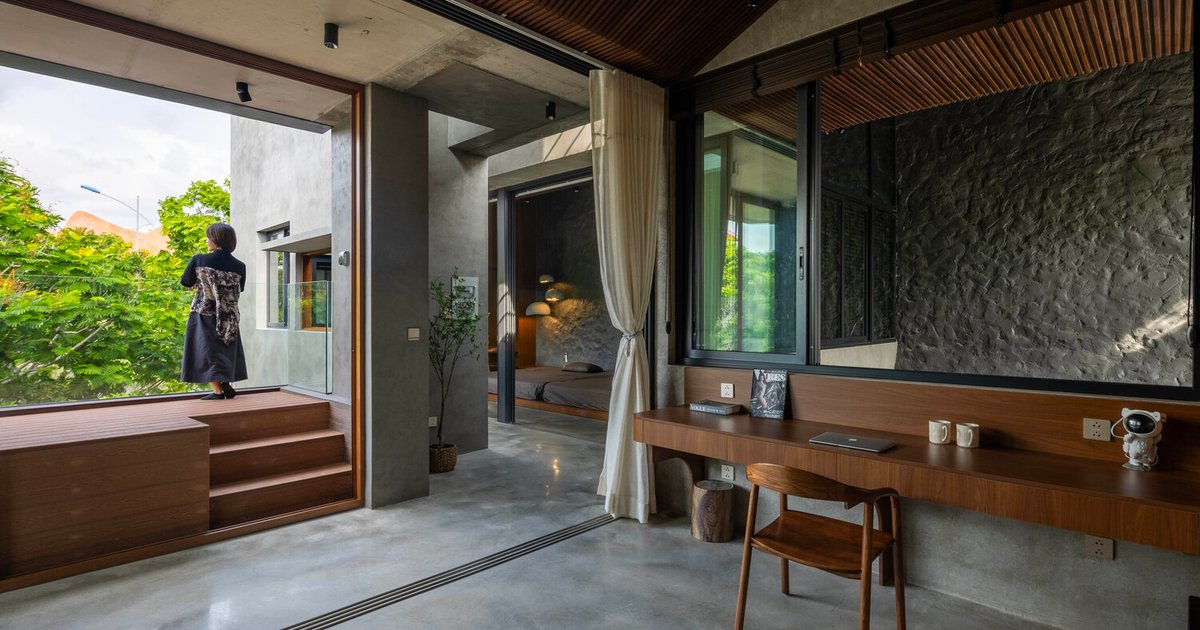 A climate-responsive Vietnamese home by Plus Idea Studio blending raw materials, passive design, and flexible spaces for sustainable family living.