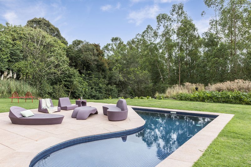 The interior reflects Rodrigo’s design ethos, with custom-designed furniture and art pieces curated by his wife, Ana Carolina. This synergy between architecture and art transforms the home into a vibrant cultural experience, embodying modern Brazilian design sensibilities.
