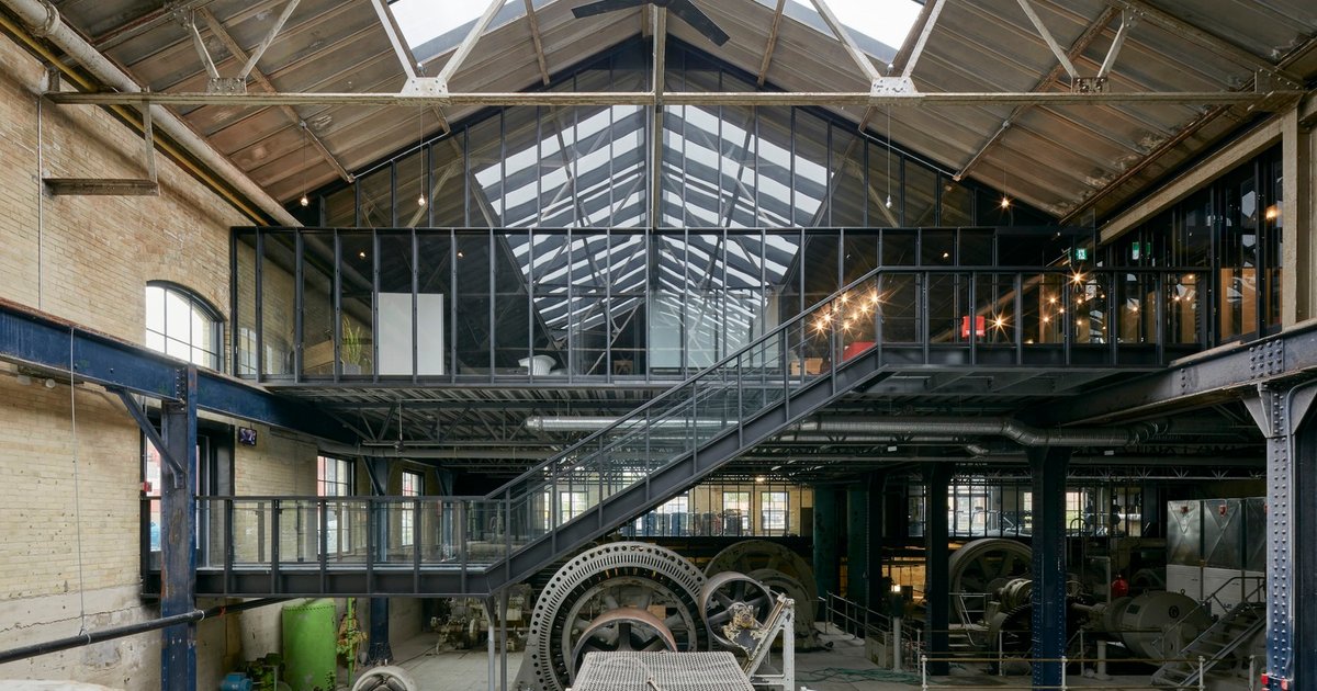 By leveraging the existing gantry crane structure, the architects suspended a floating office floor above the pump hall machinery. This not only showcases the building’s industrial history but also maximizes space efficiency while maintaining visual and physical connections to its past.
