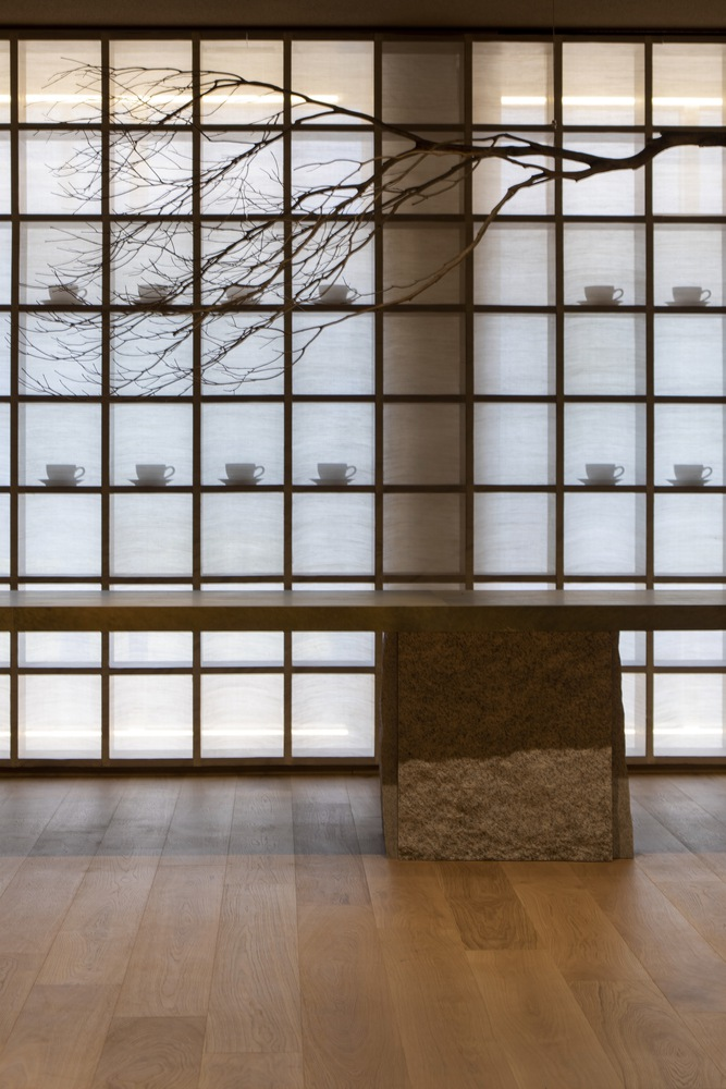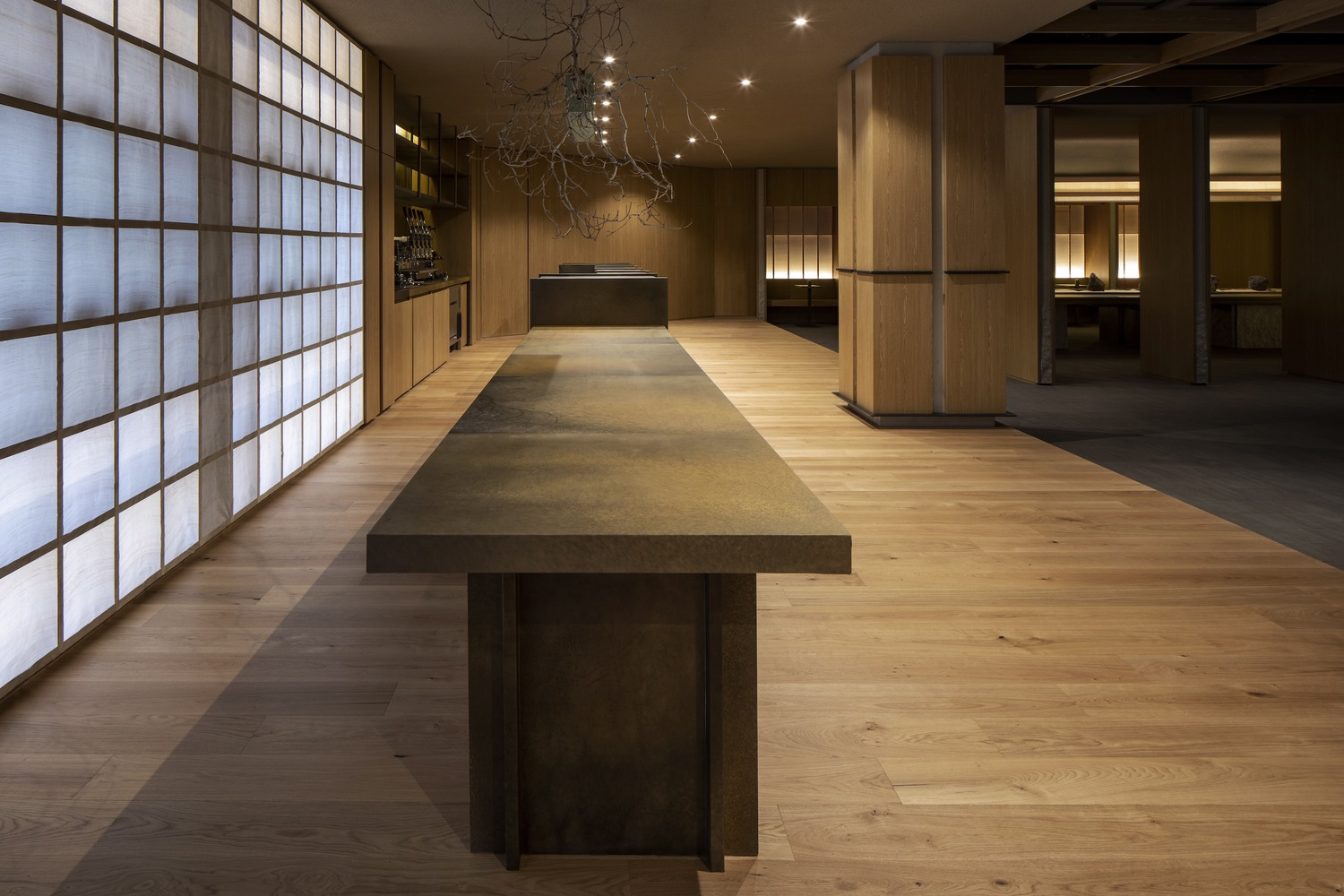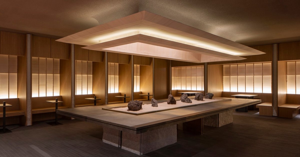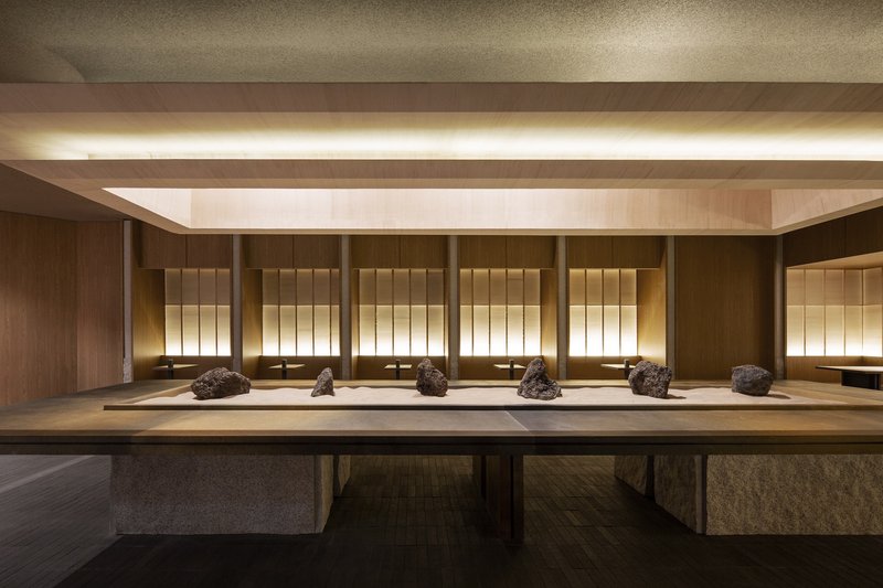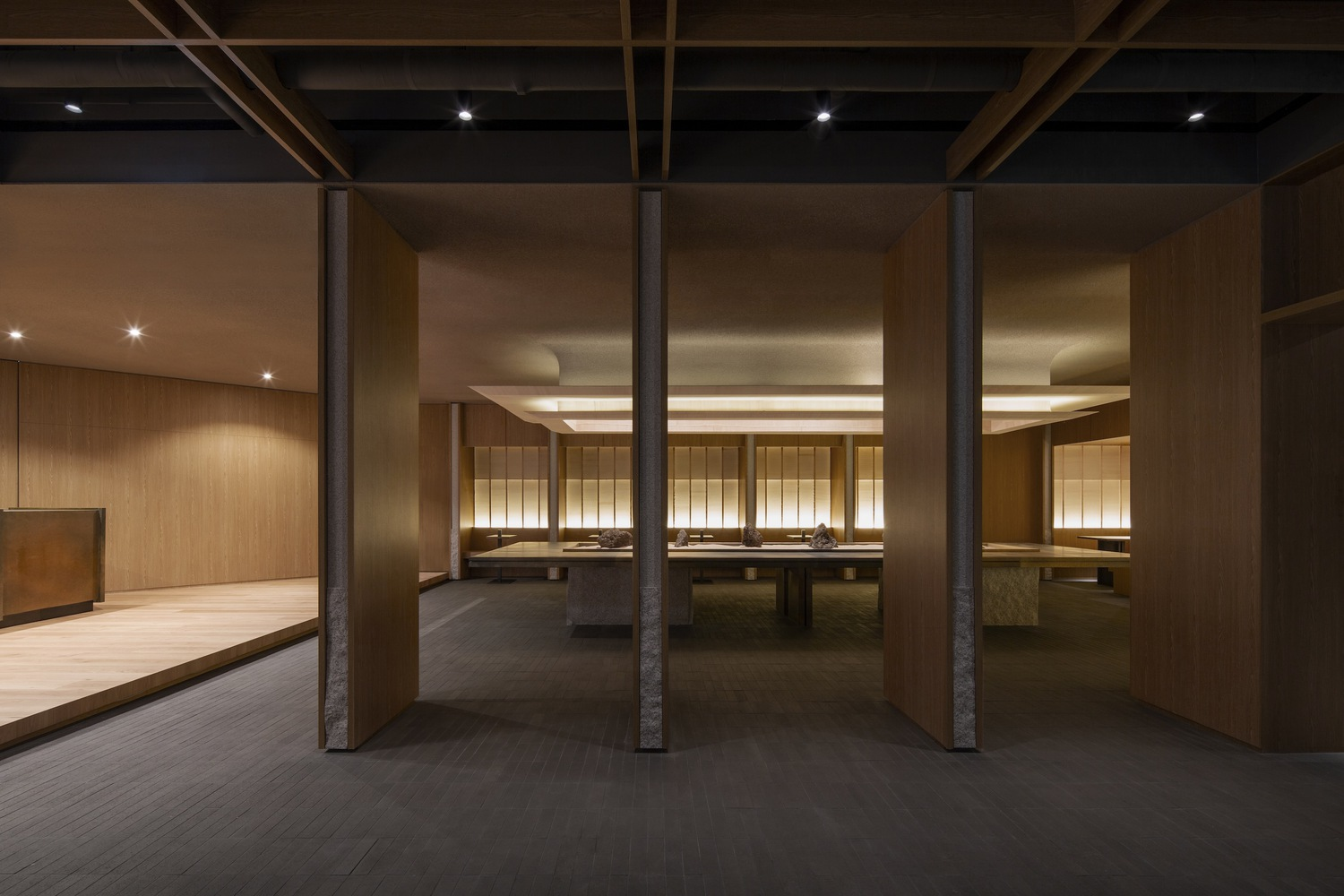 As visitors progress, the interior unfolds into four distinct scenes, carefully balancing openness with intimacy, and dynamism with stillness. Natural materials like lacquered hanji and hemp cloth soften the lighting and imbue the space with warmth, creating a contemplative atmosphere that engages all senses.